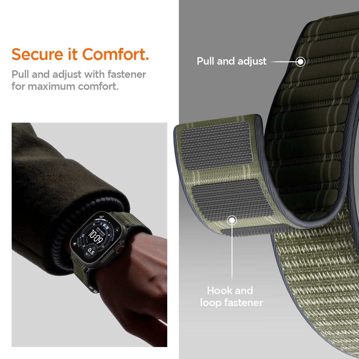 Spigen WBF0, Bande, Smartwatch, Vert, Apple, Apple Watch (44/45mm), Apple Watch 10/11 (46mm), Apple Watch Ultra (49mm), Nylon