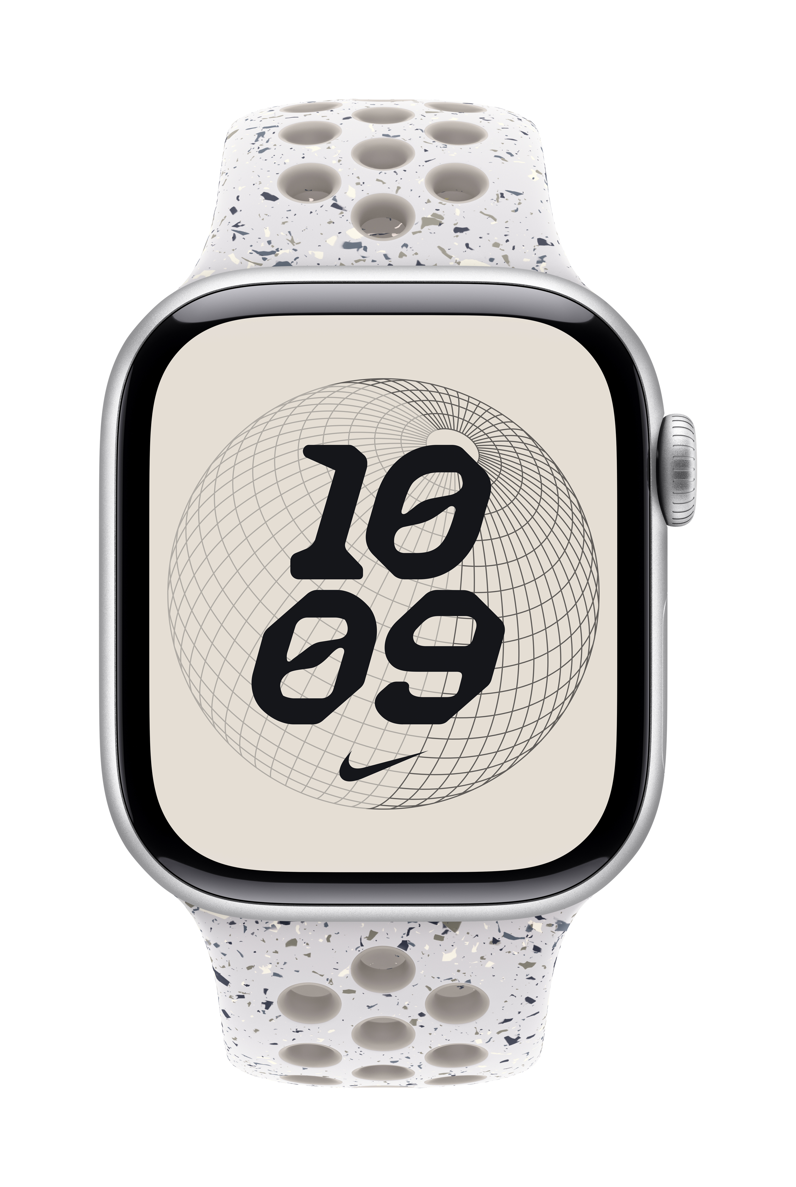 Doté de perforations moulées par compression pour une meilleure aération, le Bracelet Sport Nike est solide et résistant, mais aussi étonnamment doux. Il se pare de flocons colorés formant un motif aléatoire qui rend chaque bracelet totalement unique. Son matériau souple et dense épouse avec élégance la courbe de votre poignet et vous procure une grande sensation de confort. Un système de fermeture à clou et passant en aluminium, sur lequel est gravé le logo Run Swoosh, confère au clou une agréable finition mate.