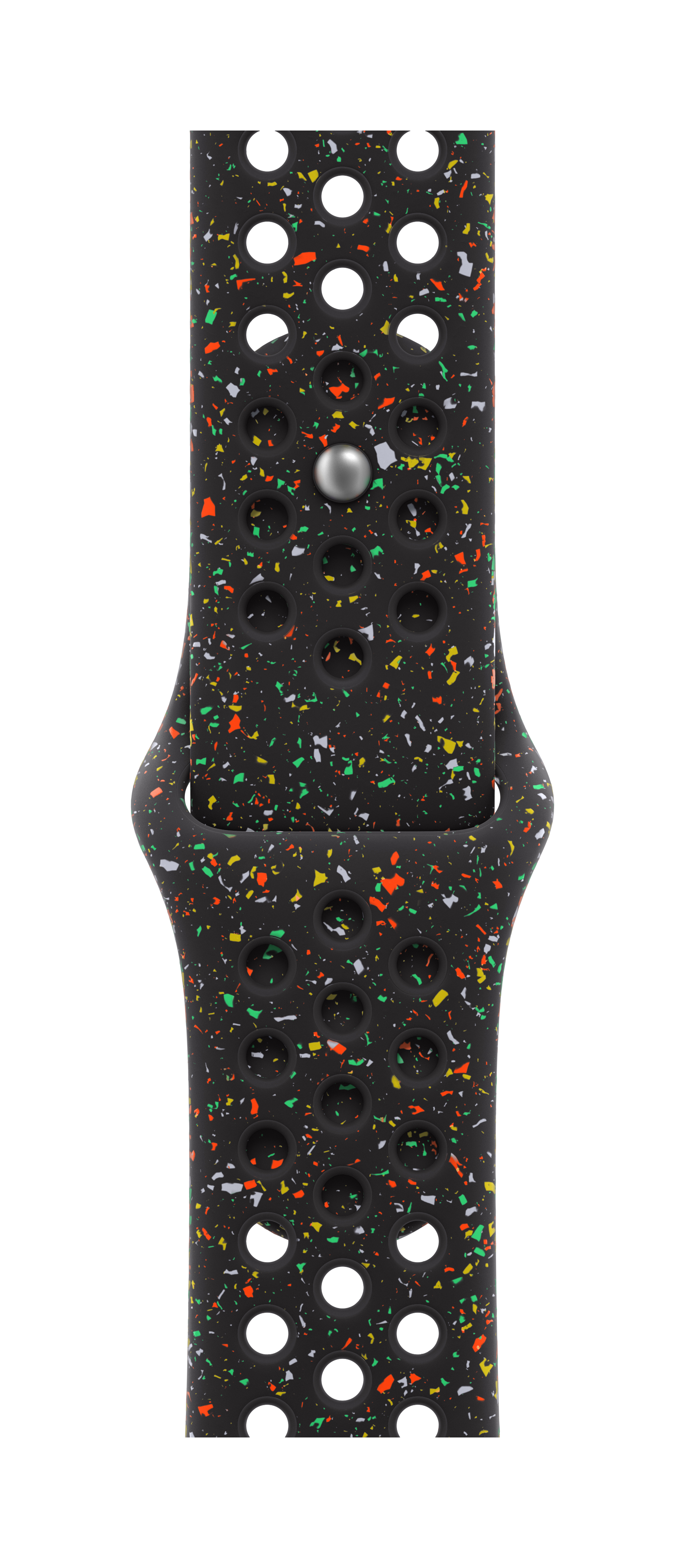 Doté de perforations moulées par compression pour une meilleure aération, le Bracelet Sport Nike est solide et résistant, mais aussi étonnamment doux. Il se pare de flocons colorés formant un motif aléatoire qui rend chaque bracelet totalement unique. Son matériau souple et dense épouse avec élégance la courbe de votre poignet et vous procure une grande sensation de confort. Un système de fermeture à clou et passant en aluminium, sur lequel est gravé le logo Run Swoosh, confère au clou une agréable finition mate.