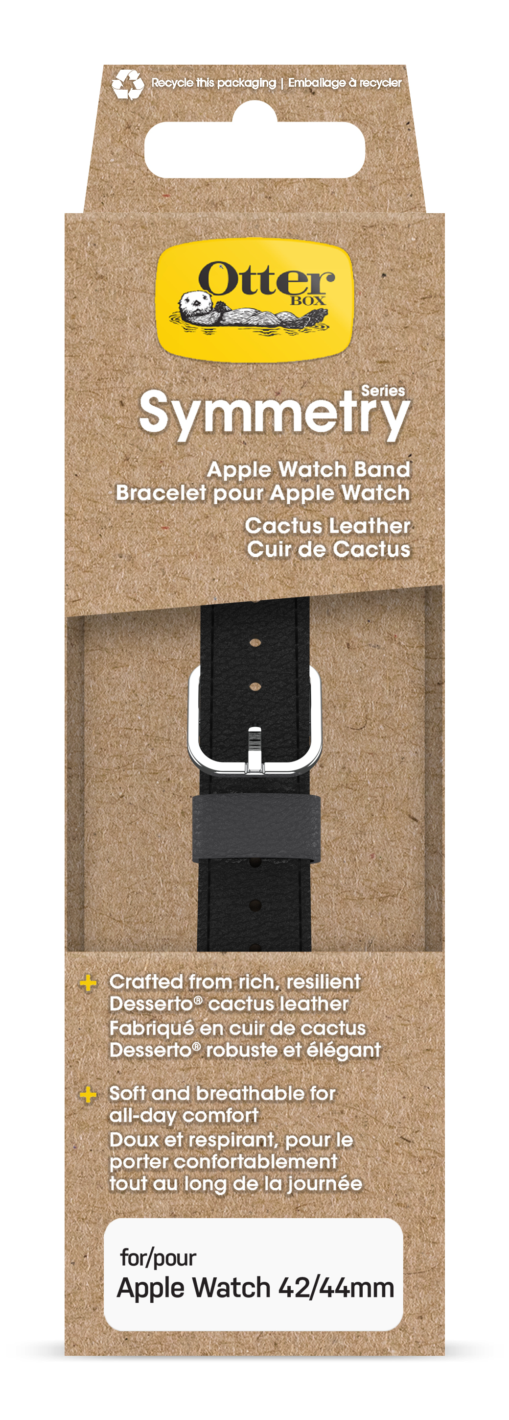Découvrez la fleur la plus rare du désert : un substitut de cuir à base de cactus par Desserto®. Il s’agit d’une alternative végétale au cuir animal, issue de la culture biologique et de la récolte durable du cactus nopal, sans besoin d’irrigation. Outre son esthétique, c’est aussi un produit non testé sur les animaux. De plus, il ne craint ni les rayures ni les taches et demeure parfaitement respirant, ce qui vous permet de le porter toute la journée. Sobres et élégants, ces bracelets en cuir à base de cactus se distinguent par la précision de leurs surpiqûres, leur fermoir haut de gamme et leurs fixations parfaitement ajustées à votre Apple Watch. À tous égards, ils donnent à votre montre une allure indémodable