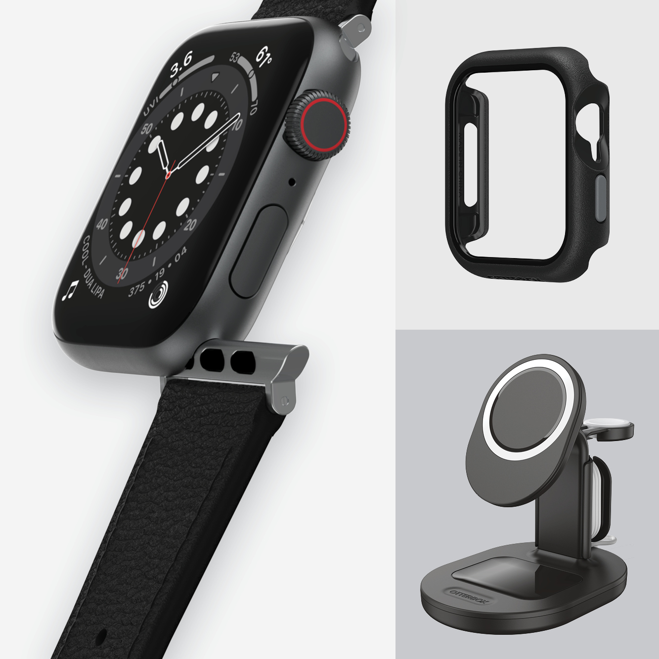 OtterBox Symmetry Cactus Series pour Apple Watch 44mm/45mm/46mm, Noir Ash, Bande, Smartwatch, Noir, Apple, Watch Series 9 45mm, Watch Series 8 45mm, Watch Series 7 45mm, Watch Series 6 44mm, Watch Series..., Cactus leather, Polyuréthane (PU)