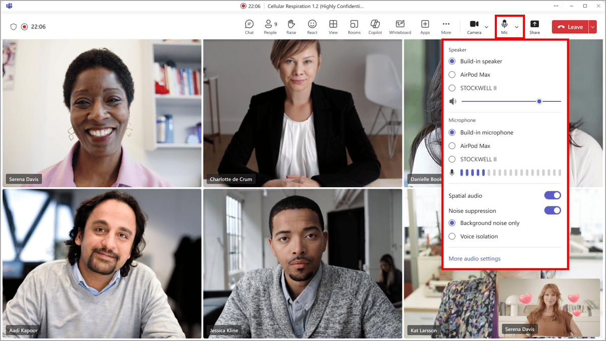 Geen 'Kan je me horen?' meer. De nieuwe microfoonvolume-indicator toont uw audiovolumes in realtime, zodat u zeker weet dat u duidelijk te horen bent. Het is een kleine maar sterke upgrade die hybride communicatie moeiteloos maakt.