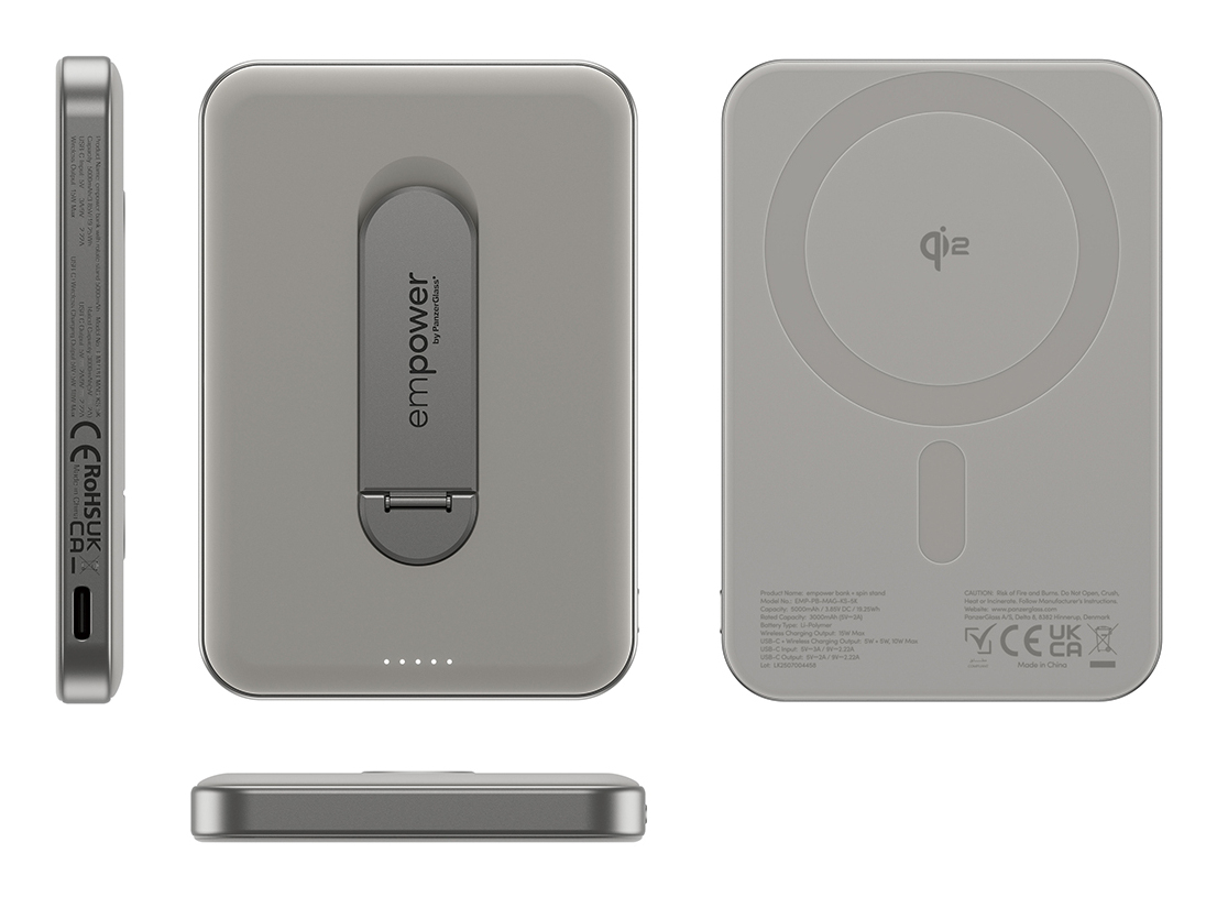 PanzerGlass empower™ by ® empower™ Bank w. Spin Stand | 5000mAh | Titanium, 5000 mAh, Recharge sans fil, Titane
