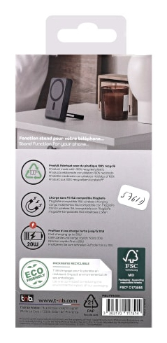T'nB PBUMAG10, 10000 mAh, Recharge sans fil, Gris