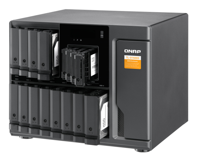 Le TL-D1600S comprend une connectivité SFF-8088 (ou SFF-8644) et plusieurs baies SATA 6 Gbit/s. Cela permet de délivrer de meilleures performances de lecture séquentielle et des vitesses de transfert plus rapides que les boîtiers d’extension USB et eSATA existants, tout en constituant une option plus économique par rapport à un boîtier SAS QNAP REXP.