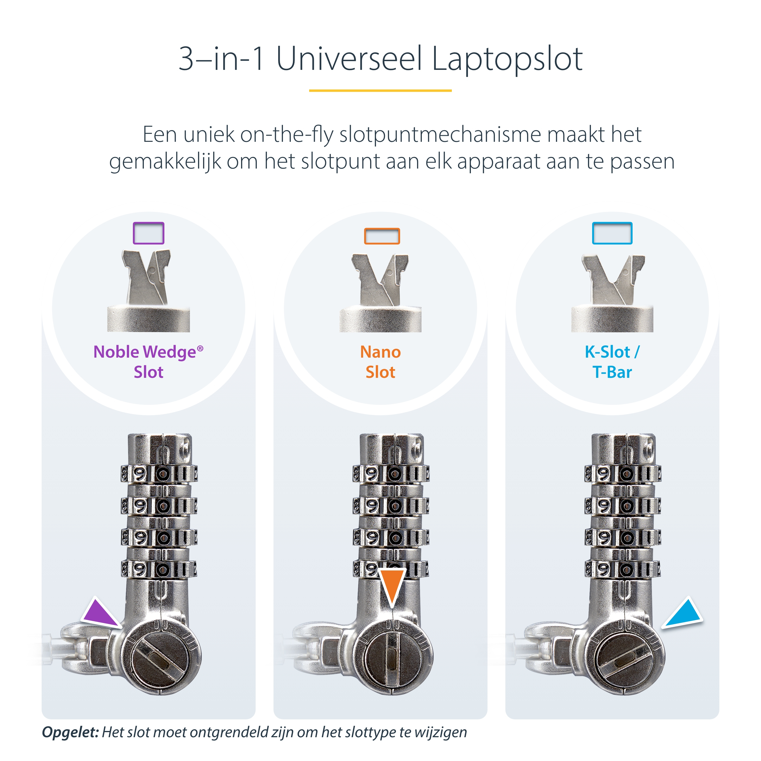 StarTech.com Lot de 25 Antivols Universels de 2m pour Ordinateur Portable, Câble de Sécurité Sérialisé pour Ordinateur Portable/PC, Compatible avec Noble Wedge®/Nano/K-Slot, Câble à Combinaison Sans Clé, 2 m, Kensington, Nano, Noble, Verrouillage à combin