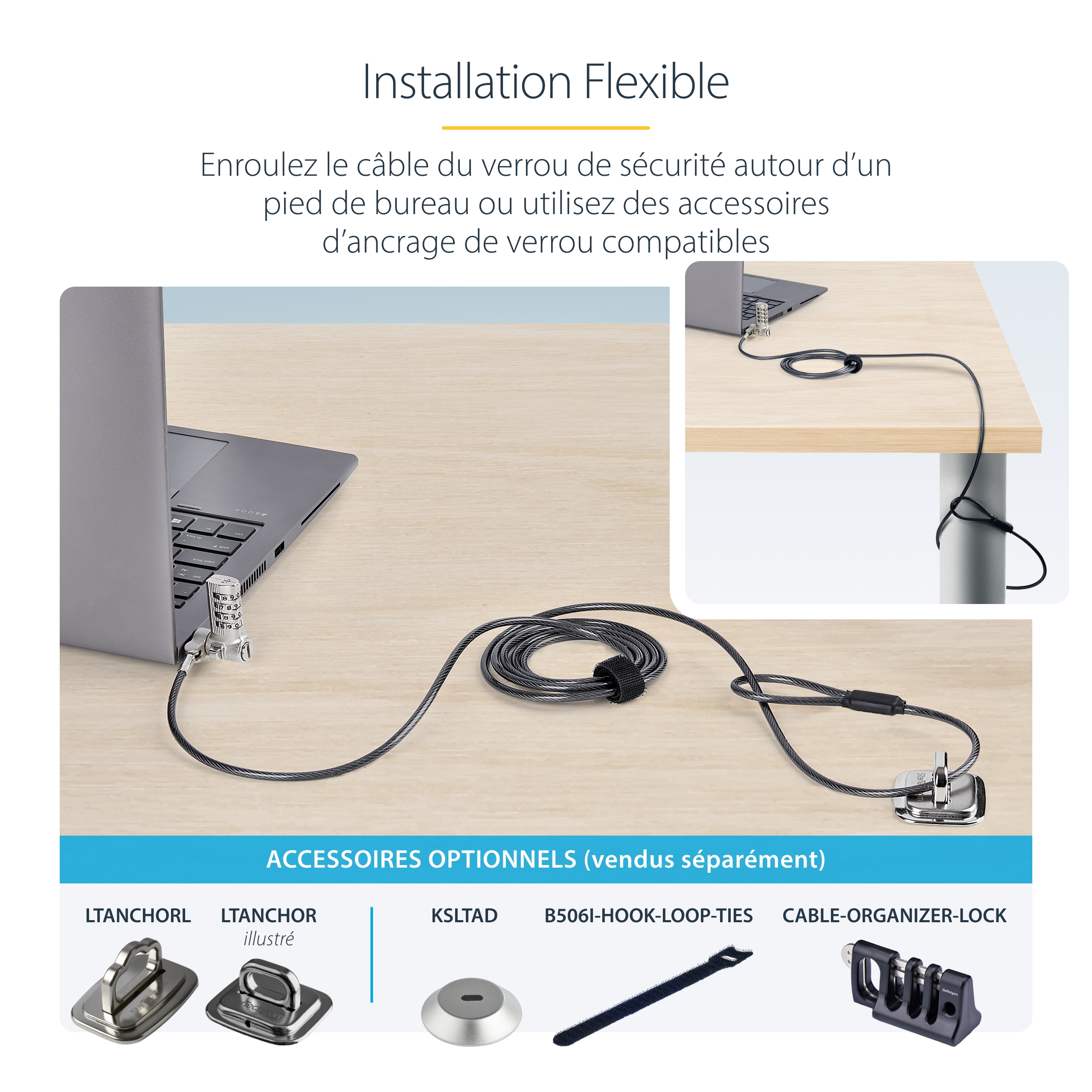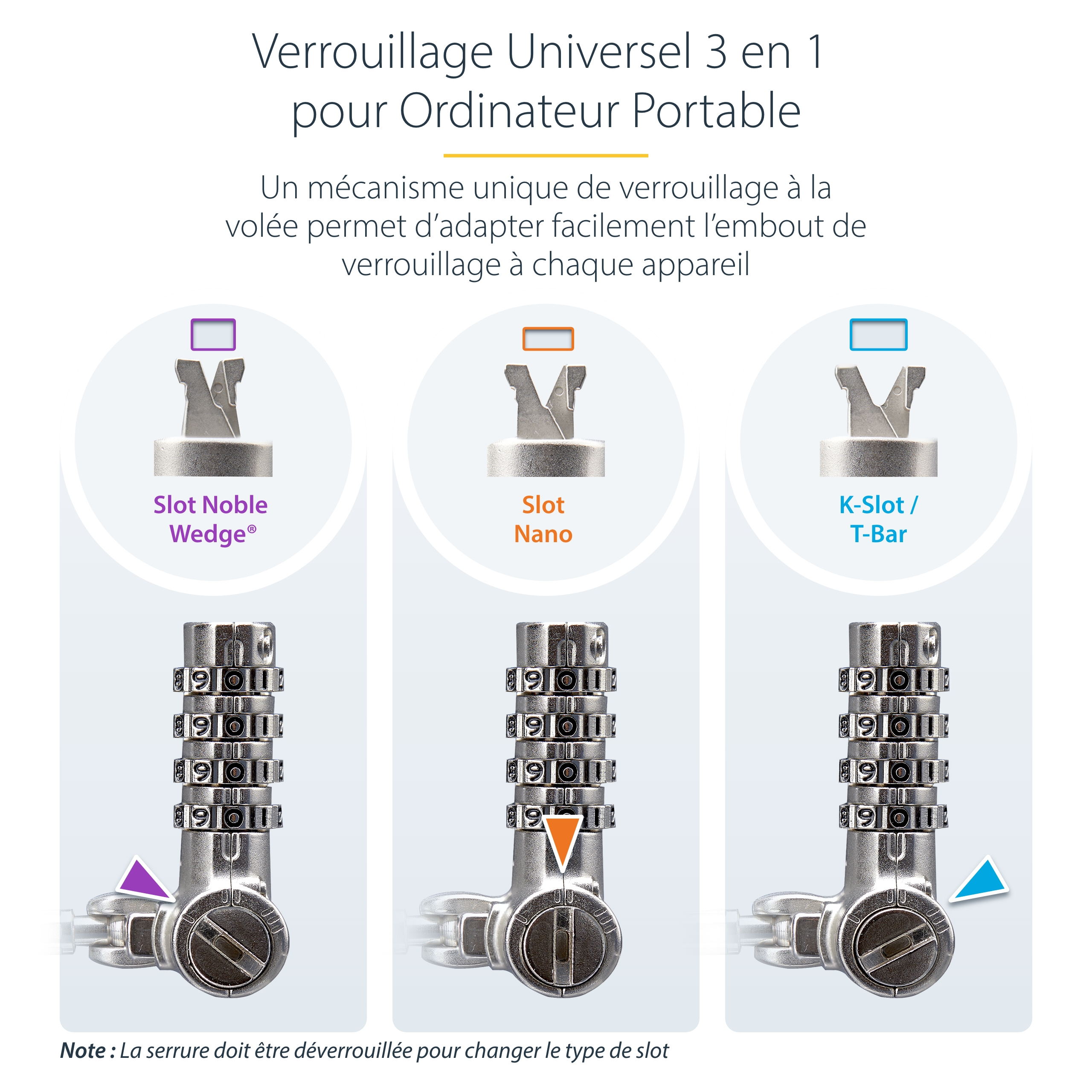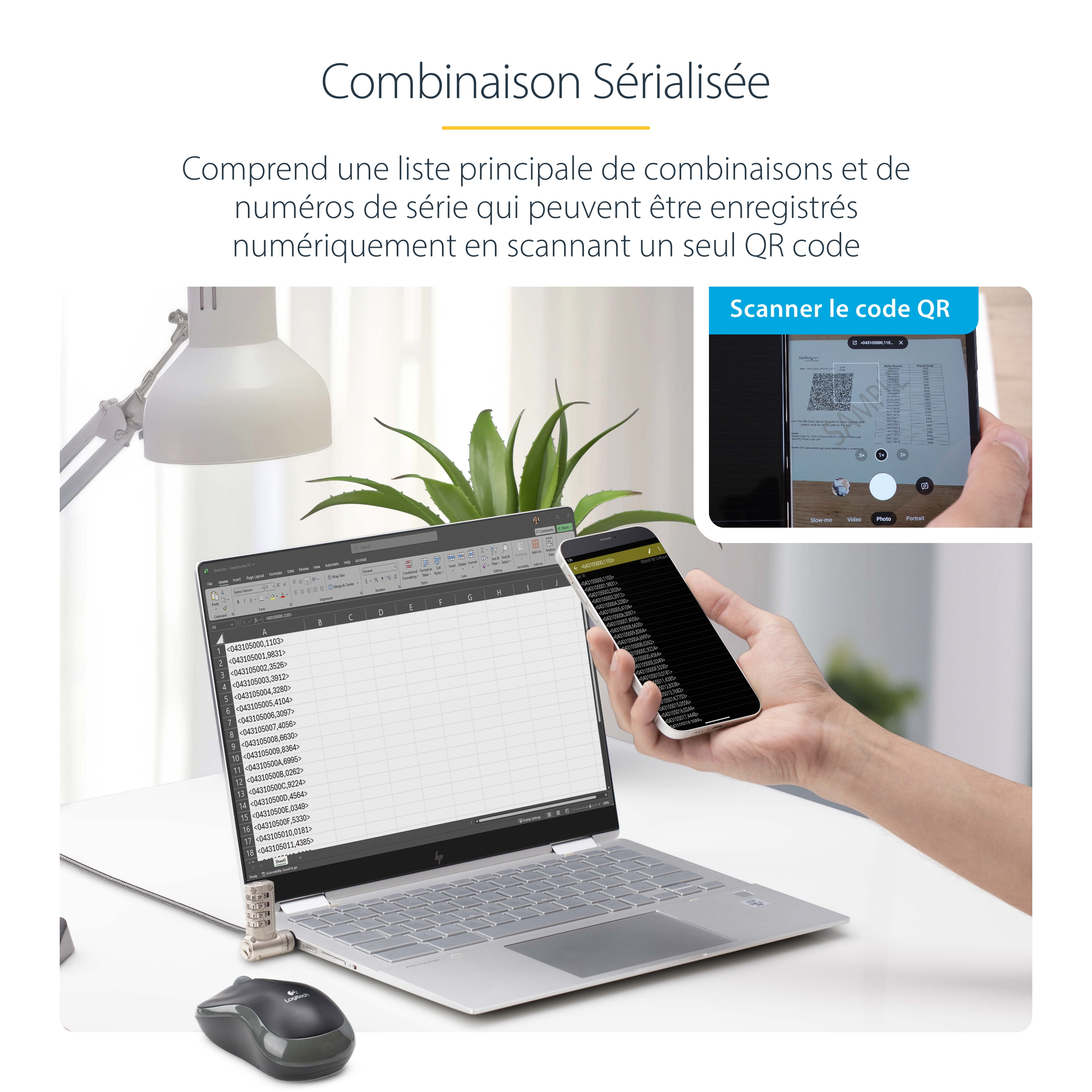 Sécurisez un ordinateur portable, une station d'accueil ou d'autres périphériques avec cet antivol de câble à combinaison sérialisée 3-en-1