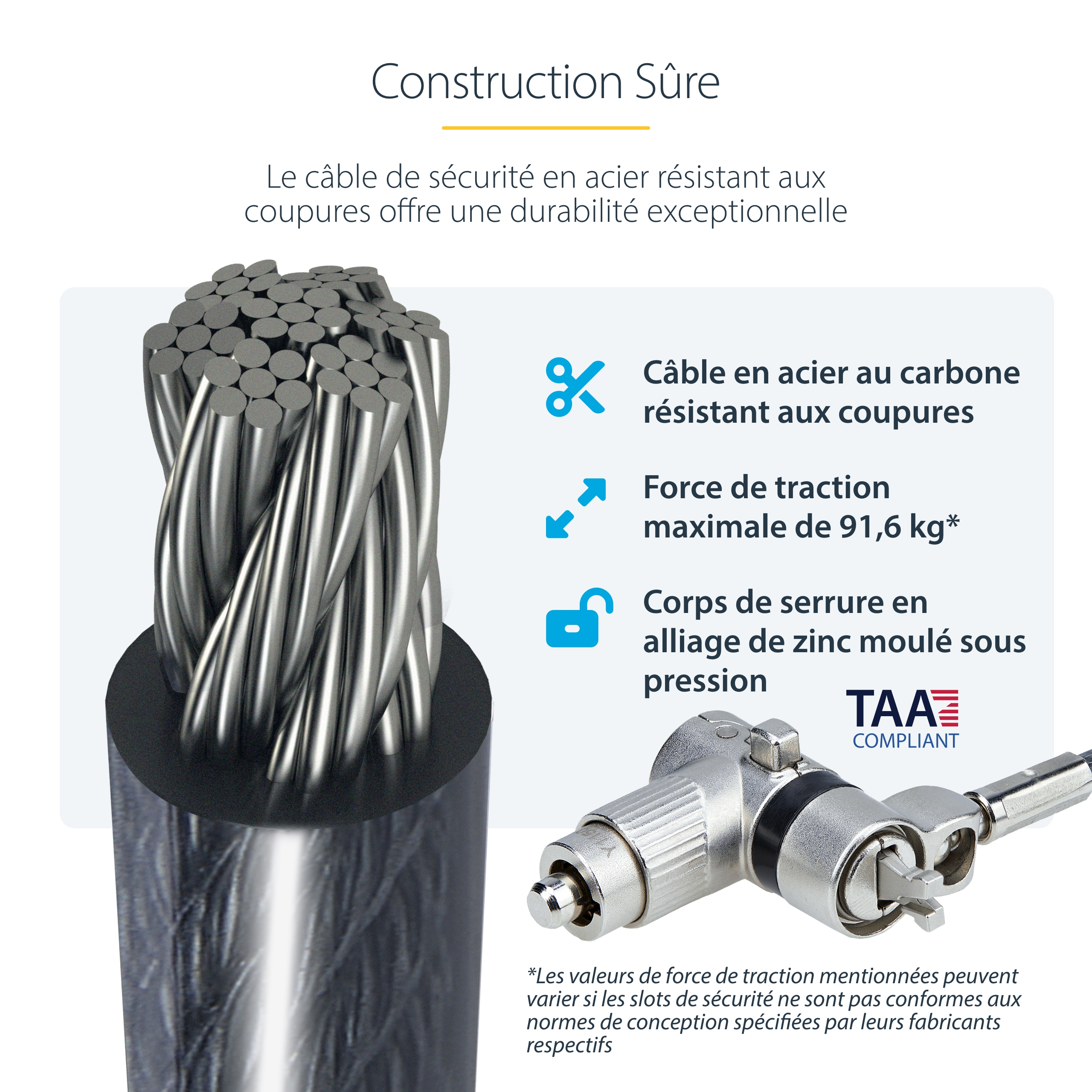StarTech.com Lot de 25 Antivols Universels de 2 m pour PC, Câble de Sécurité Sérialisé, Compatible Noble Wedge®/Nano/K-Slot