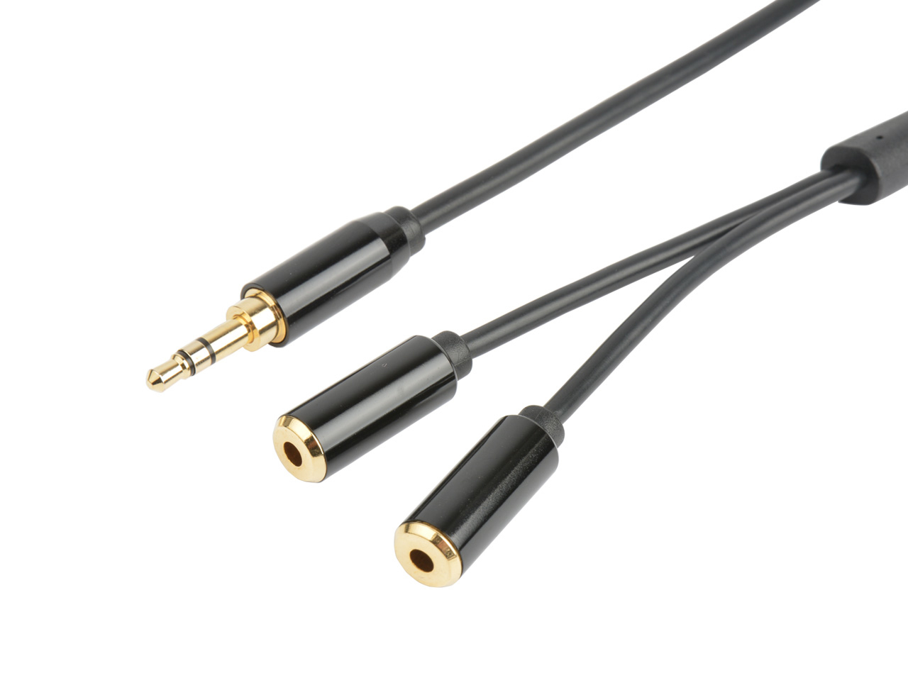 Prokord AUDIO-0008. Connecteur 1: 3,5mm, Genre de connecteur 1: Mâle, Connecteur 2: 2 x 3.5mm, Genre de connecteur 2: Femelle, Contacts du connecteur de placage: Or, Longueur de câble: 0,5 m, Couleur du produit: Noir
