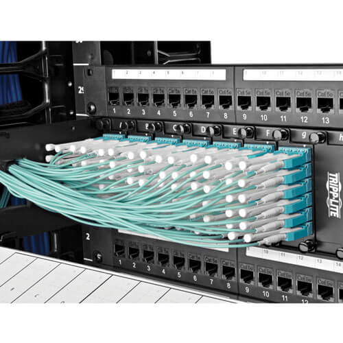 Tripp Lite N844-03M-8LC-PT. Longueur de câble: 3 m, Type de fibre optique: OM3, Connecteur 1: MPO/MTP, Connecteur 2: LC, Diamètre principal: 50 µm