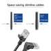 Les câbles de raccordement CAT6A U/FTP slimline pour centres de données ont un diamètre plus petit (3,8 mm contre 5,9 mm) que les cordons de raccordement CAT6A classiques. Le rayon de courbure est plus petit que celui des cordons de raccordement standard. Cela permet une meilleure circulation de l'air dans le rack de serveurs ou l'armoire réseau. Le câble de raccordement est équipé d'un connecteur RJ45 droit et d'un connecteur RJ45 coudé à 90° vers le bas. Idéal pour les situations où l'espace est limité sans compromettre le rayon de courbure. Par exemple dans les armoires réseau et derrière les équipements.
