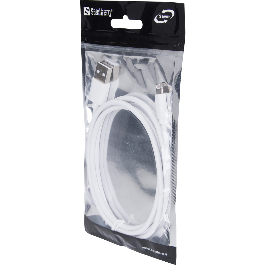 Sandberg USB>Lightning MFI 1m SAVER, 1 m, Lightning, USB A, Mâle, Mâle, Blanc