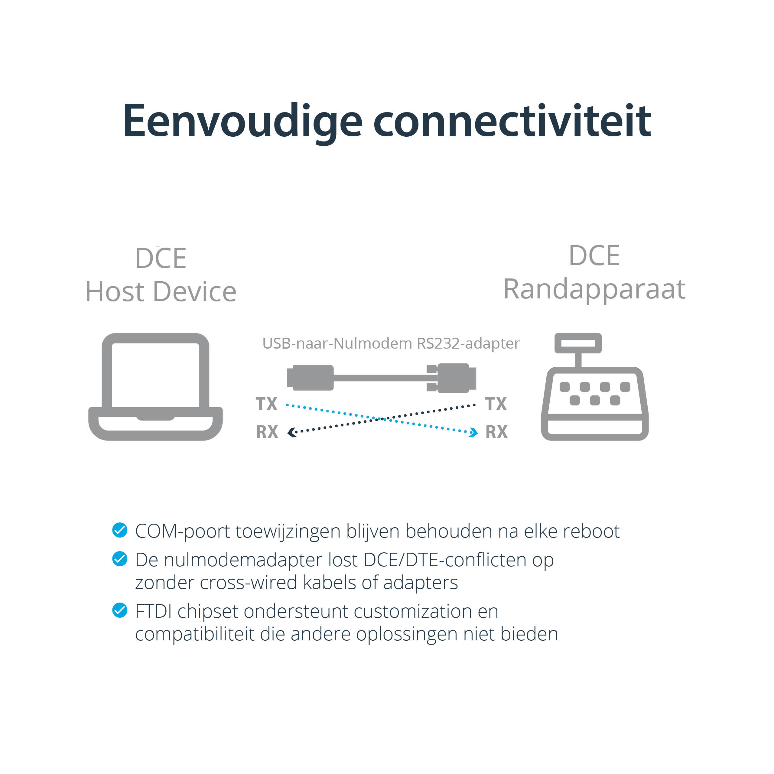 Cet adaptateur compact offre la mémorisation du port de communication, permettant ainsi à la valeur du port COM d'être automatiquement réaffectée au port si le câble est déconnecté, puis reconnecté à l'ordinateur hôte, ou si le système est redémarré. Le chipset FTDI intégré prend en charge une personnalisation supplémentaire, des fonctions avancées et une compatibilité souvent absente avec les autres solutions.