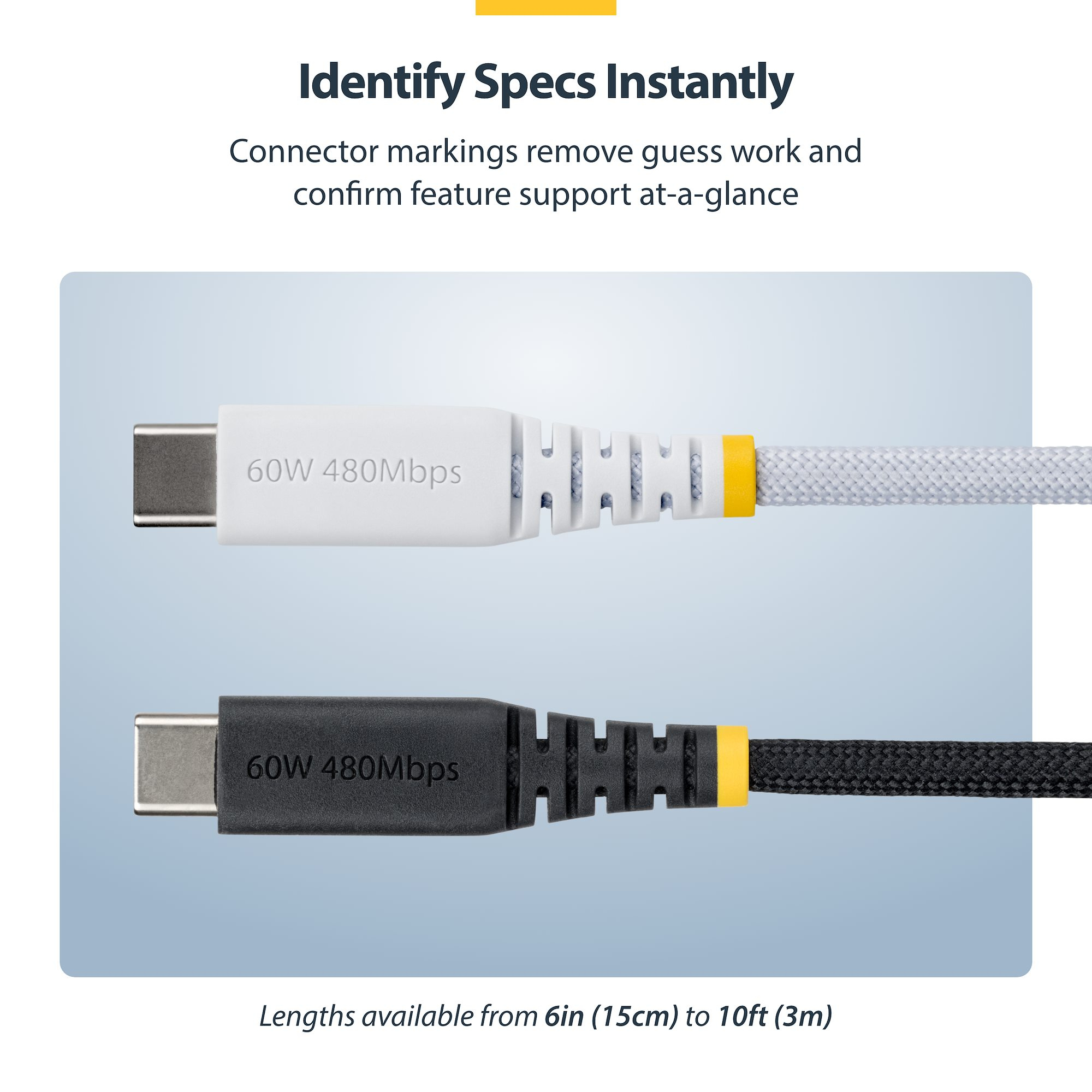StarTech.com USB2CC2MNCBRWH, 2 m, USB C, USB C, USB 2.0, 0,48 Gbit/s, Blanc