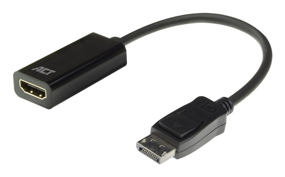 L'adaptateur DisplayPort vers HDMI AC7555 d'ACT permet de connecter votre ordinateur portable équipé d’une sortie DisplayPort à un moniteur ou un projecteur équipé d’une entrée HDMI. La résolution maximale prise en charge est 3840 x 2160 (4K) @ 60Hz. ou 1920 x 1080 @ 60Hz. L’adaptateur est doté de connecteurs plaqués or.