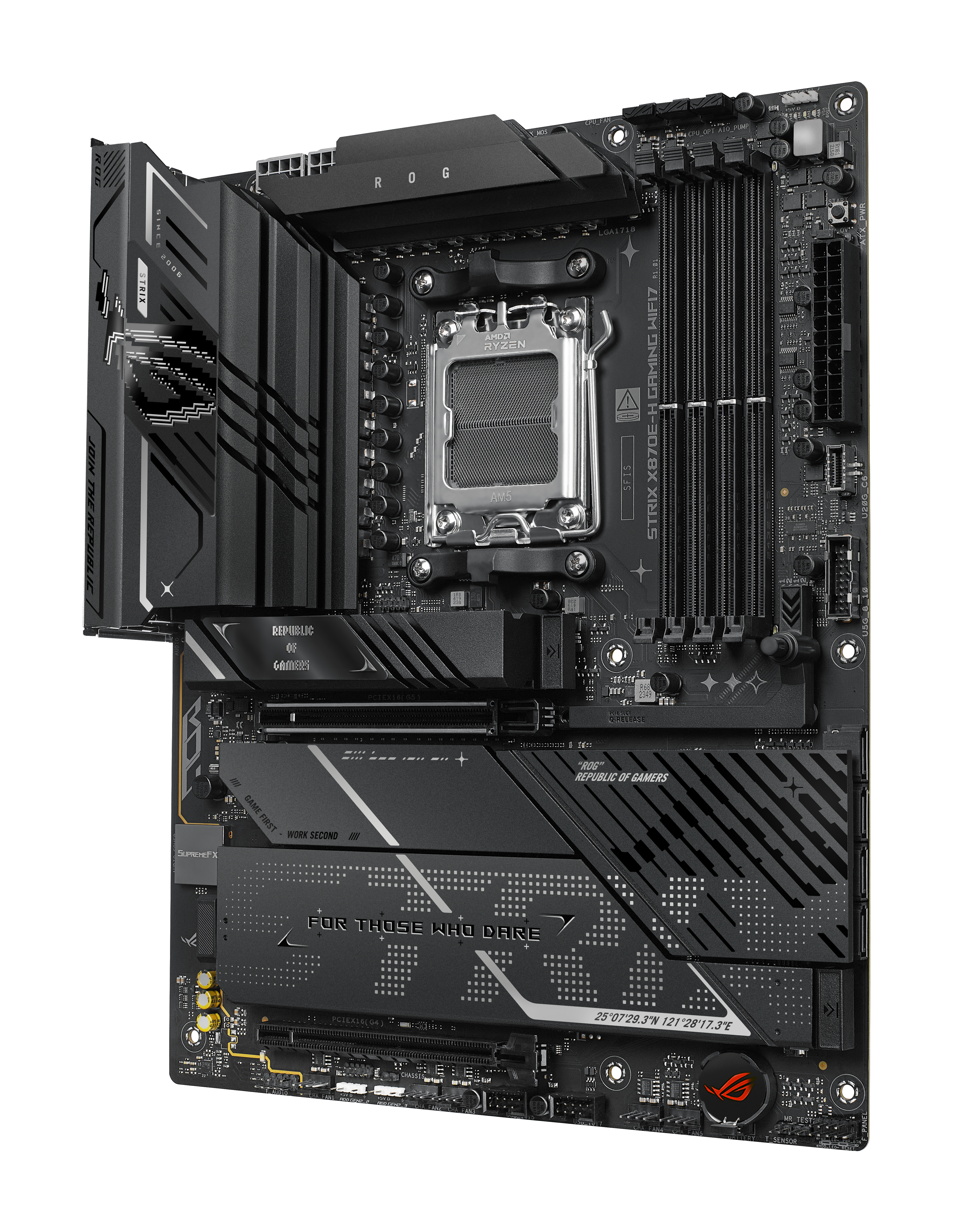 ASUS ROG STRIX X870E-H GAMING WIFI7. Fabricant de processeur: AMD, Socket de processeur (réceptable de processeur): Emplacement AM5, Processeurs compatibles: AMD Ryzen 7000 Series, AMD Ryzen 8000 Series, AMD Ryzen 9000 Series. Types de mémoire pris en charge: DDR5-SDRAM, Mémoire interne maximale: 256 Go, Type de support (slot): DIMM. Interfaces de lecteur de stockage prises en charge: M.2, SATA III, Types de lecteurs de stockage pris en charge: HDD & SSD, Niveaux RAID: 0, 1, 10, 5. Type d'interface Ethernet: 5 Gigabit Ethernet, Norme Wi-Fi: Wi-Fi 7 (802.11be), Standards wifi: Wi-Fi 7 (802.11be). composant pour: PC, Elément de forme de carte mère: ATX, famille de composant de produits: AMD