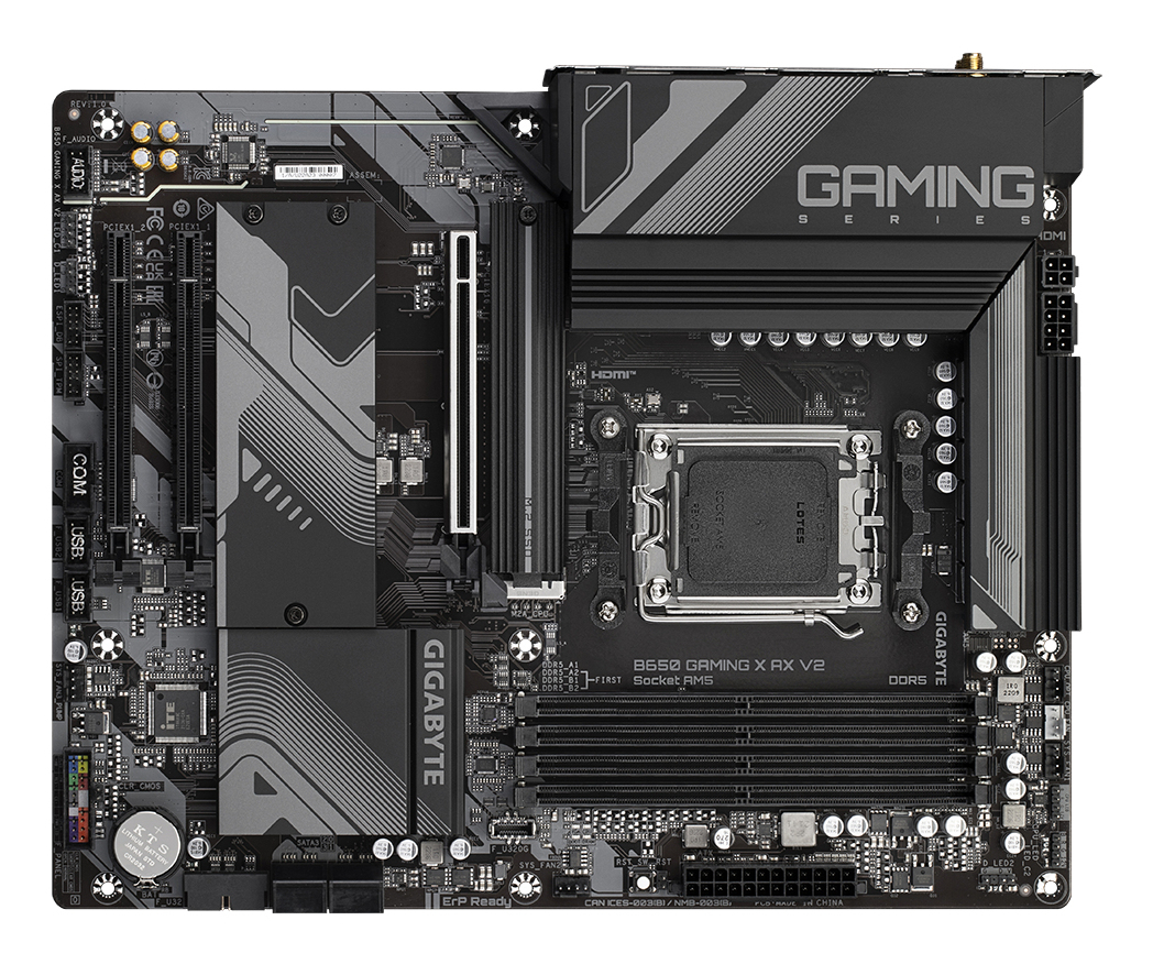 GIGABYTE B650 GAMING X AX V2 Carte mère - AMD Ryzen série 9000, VRM 8+2+2 phases, jusqu'à 8000 MHz DDR5 (OC), 1xPCIe 5.0 + 2xPCIe 4.0 M.2, LAN 2,5 GbE, WIFI 6E, USB 3.2 Gen 2, AMD, Emplacement AM5, AMD Ryzen 7000 Series, AMD Ryzen 8000 Series, AMD Ryzen 9
