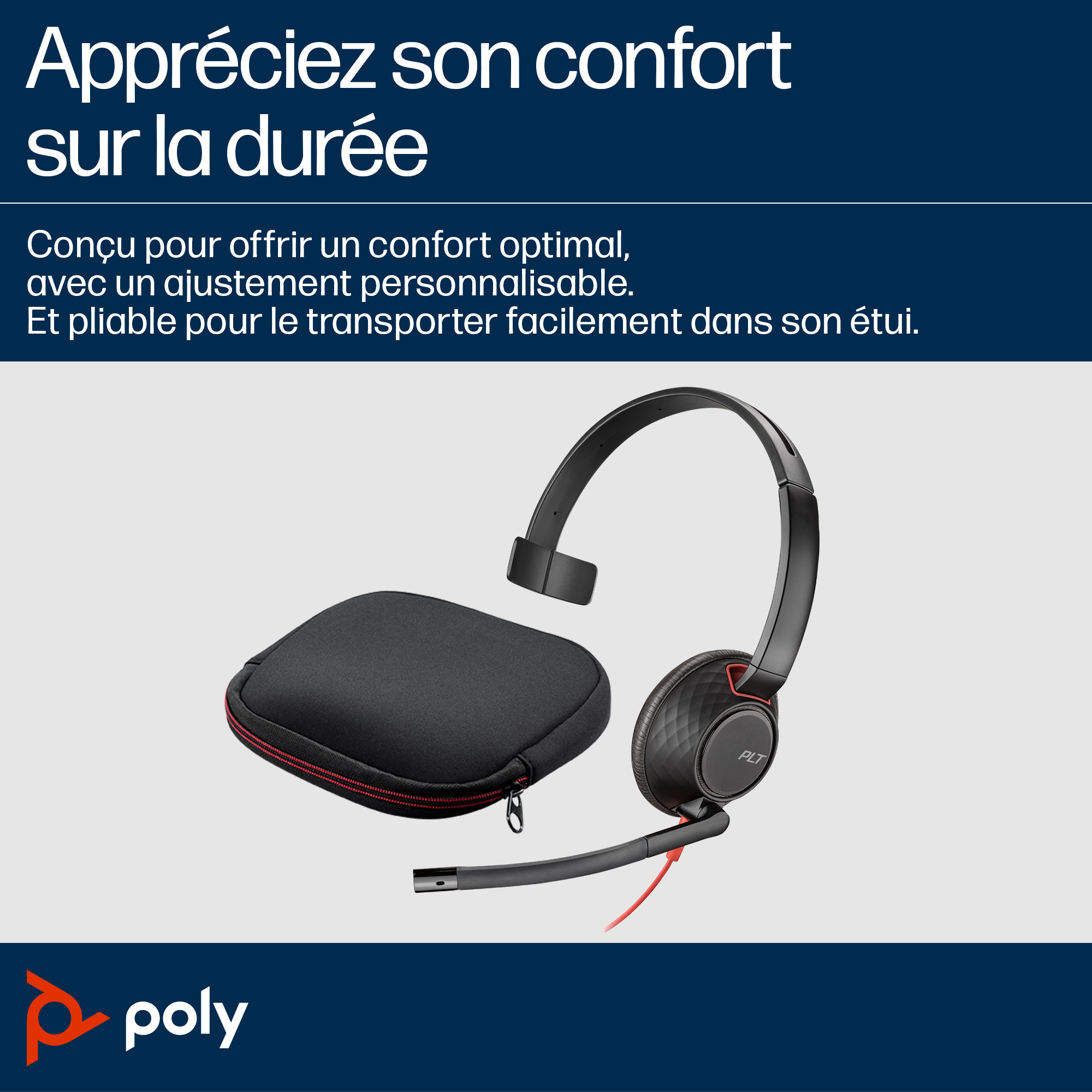 Micro-casque monaural USB-C Poly Blackwire 5210 + prise 3,5 mm + adaptateur USB-C/A (lot)