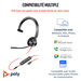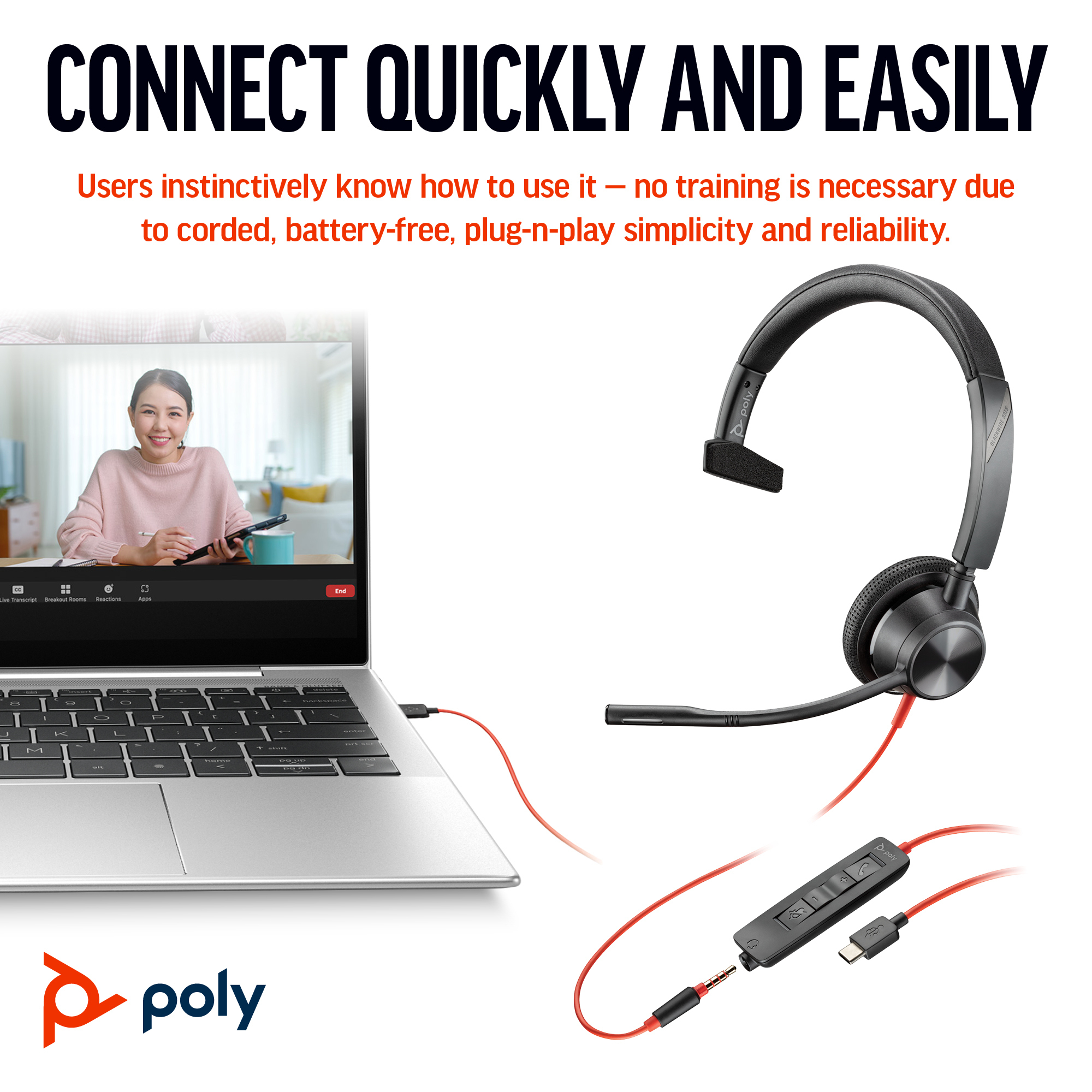 Micro-casque Poly Blackwire 3315 monaural USB-C certifié Microsoft Teams + connexion 3,5 mm + adaptateur USB-C/A