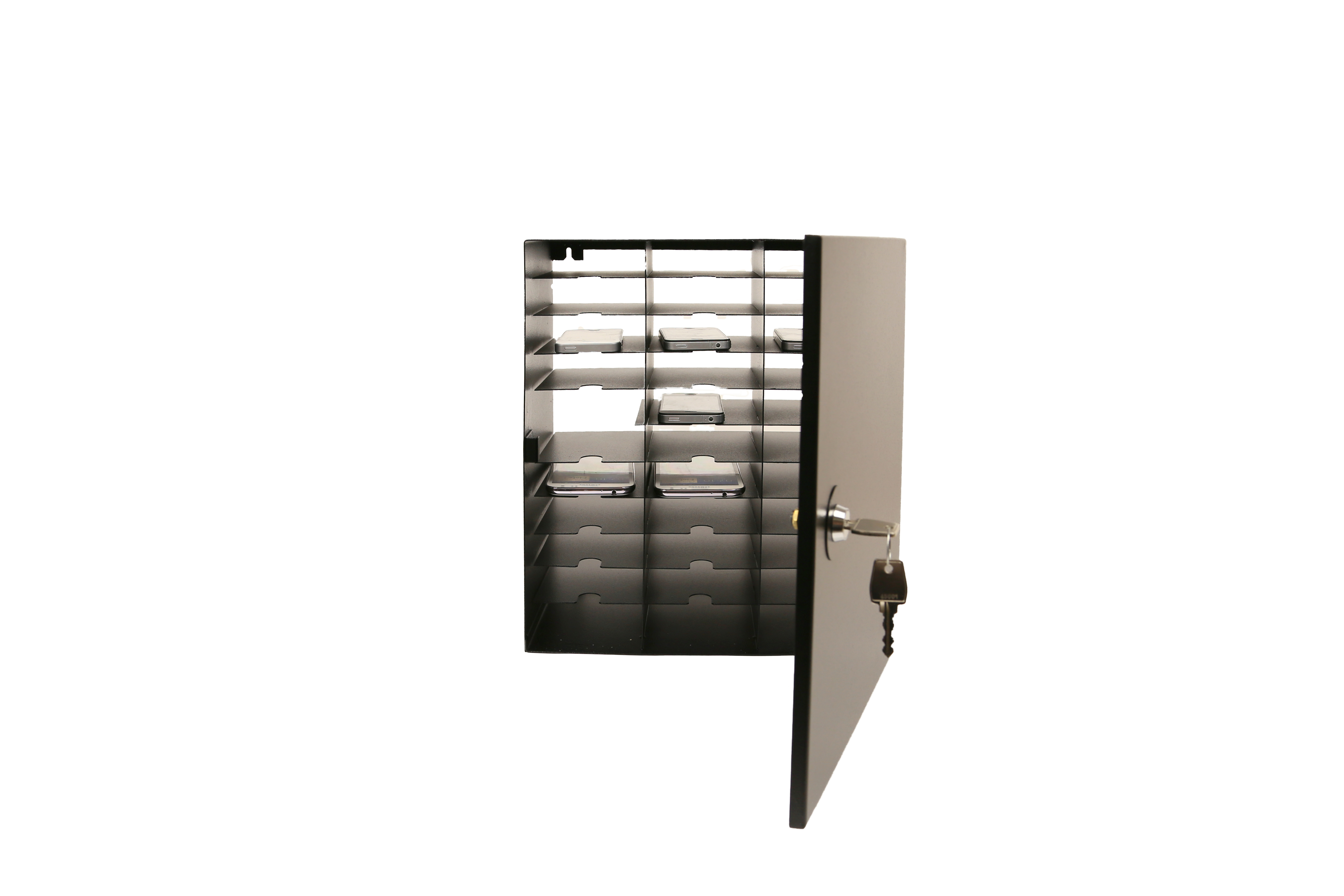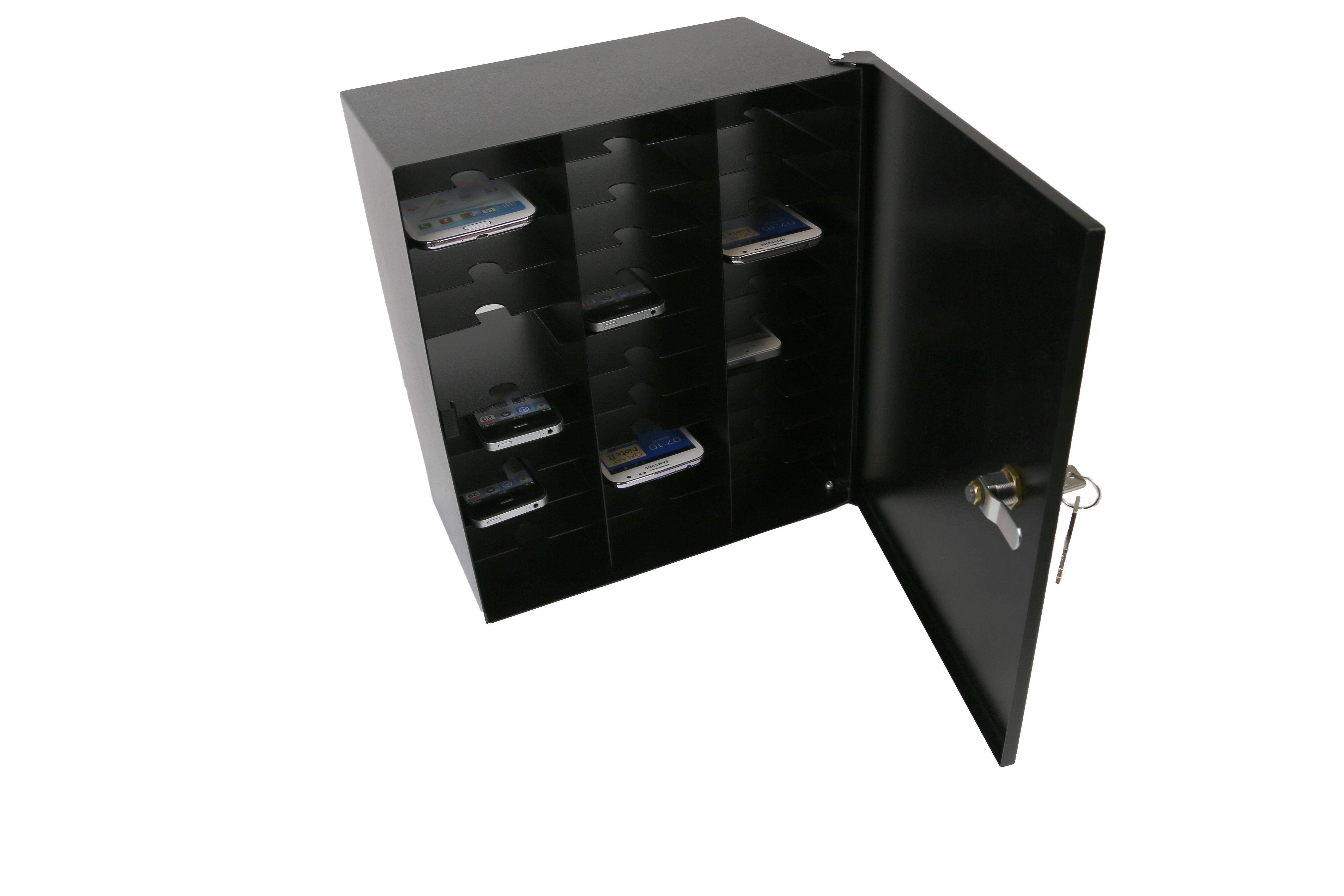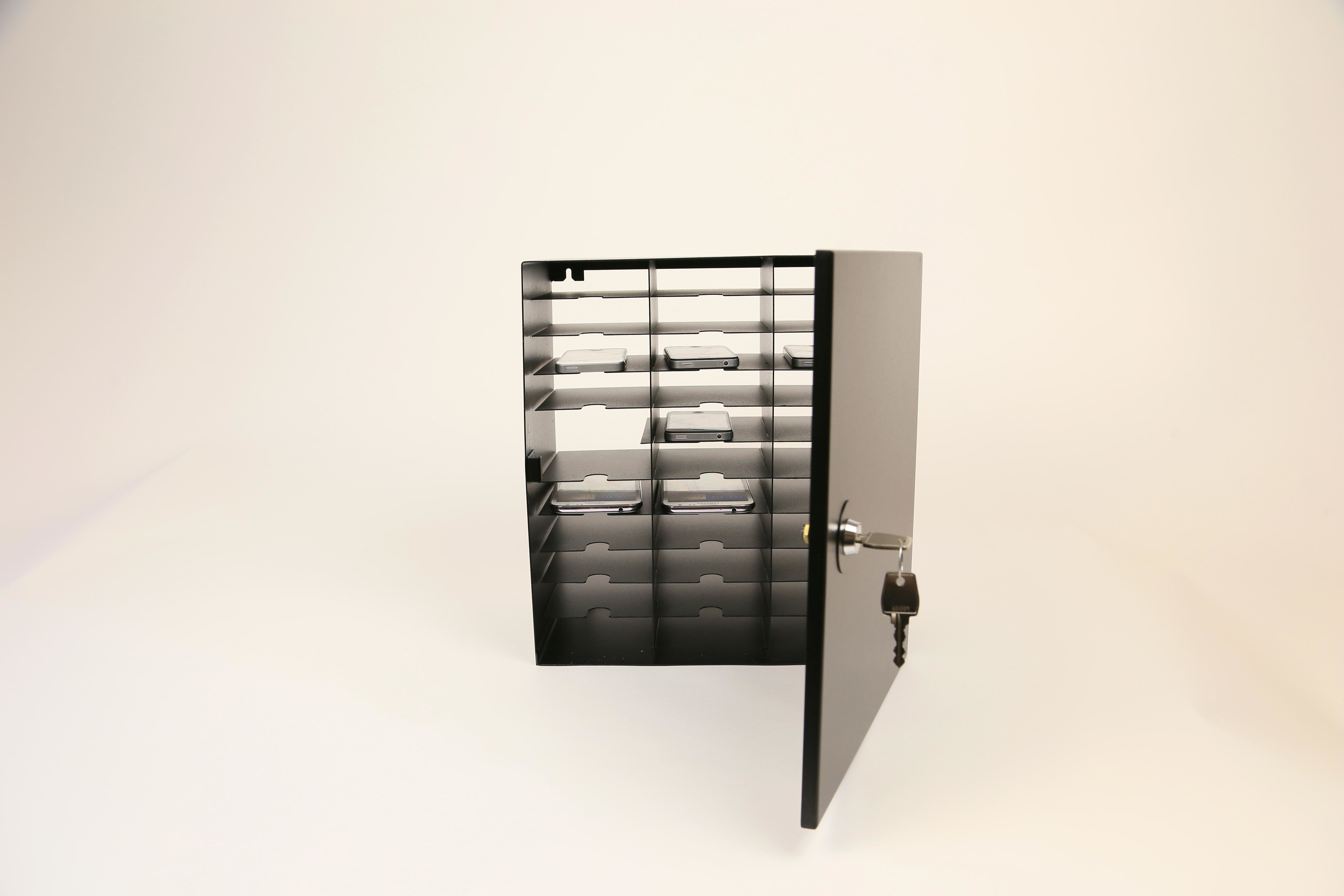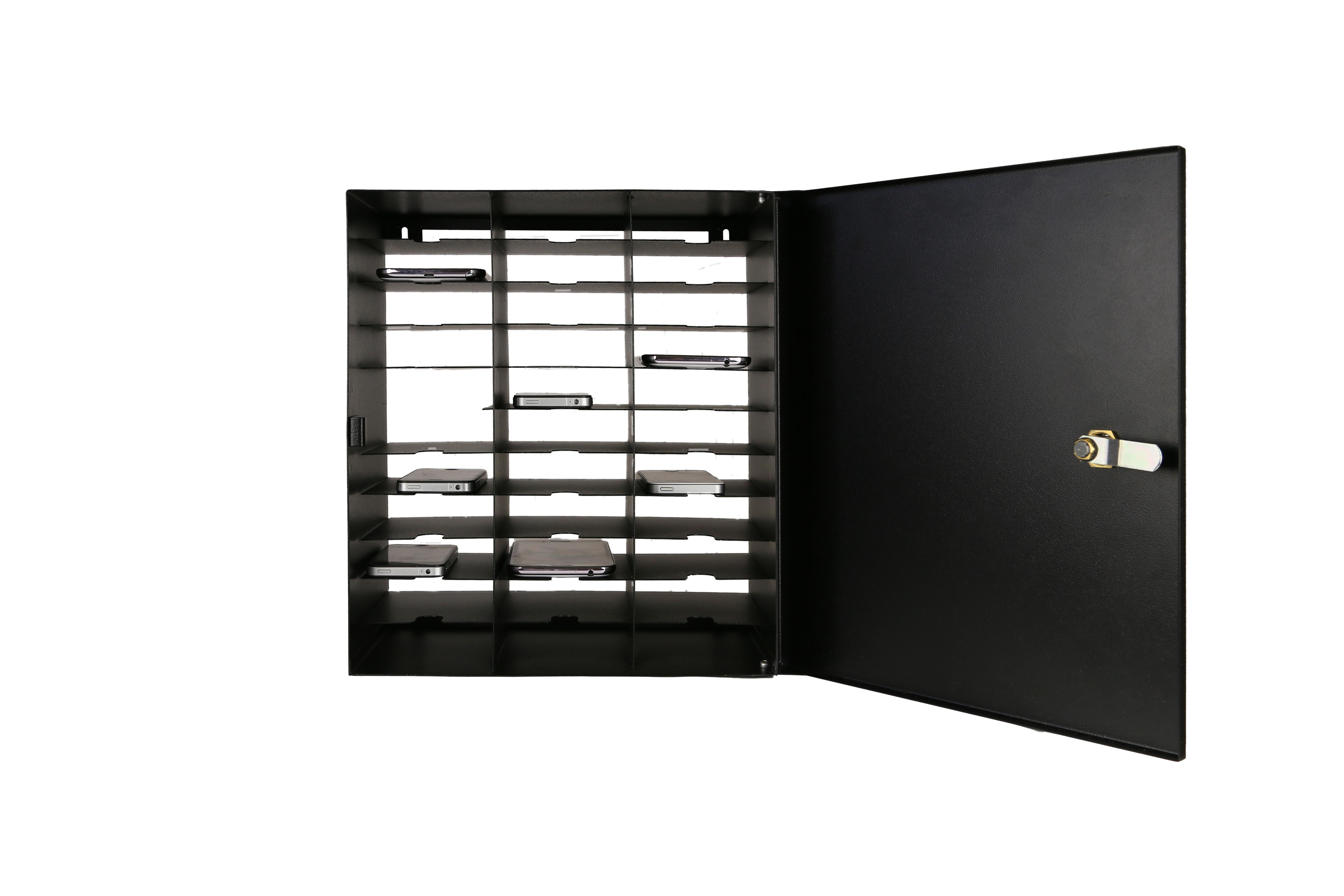 NoteBox Mobile is an ideal solution to securely store all students’ mobile phones. The sturdy and compact NoteBox Mobile is designed to hold 32 mobile phones. NoteBox Mobile is fitted with a key lock, so the teacher can easily and quickly lock all mobile phones inside. NoteBox Mobile can be hung on the wall by the changing room, in the gym, classroom or some other convenient place. NoteBox Mobile was developed at the request of several European municipalities and designed to store up to 32 mobile phones. The main objective of the development has been to develop a storage solution that supports and integrates students’ daily use of mobile phones in modern education