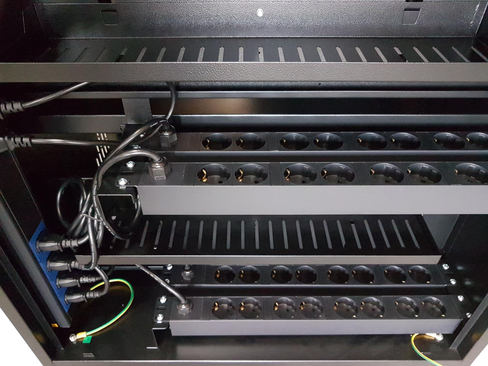 NoteCart Flex is a mobile, compact cabinet for storage and charging of iPads, tablets, laptops, Chromebooks and similar devices. The 4 wheels on the NoteCart Flex series have been carefully selected to complement the rest of the design so that NoteCart rolls easily, regardless of weight of the many devices and the type of floor under the mobile cabinet. Wheels with ball bearings and soft rubber coating which, in use, maintain and restores the rounding of the wheel. During operation, all electronics are stored in the locked compartment behind the cabinet, so that only the IT manager has access to them. A secure cable management system ensures that the cables stay in the cabinet once they have been installed. The main panel which divides power connectors into groups of 8, with sequential control with a 3 second time interval. This is to ensure unnecessary overloading when connected to the main switch.