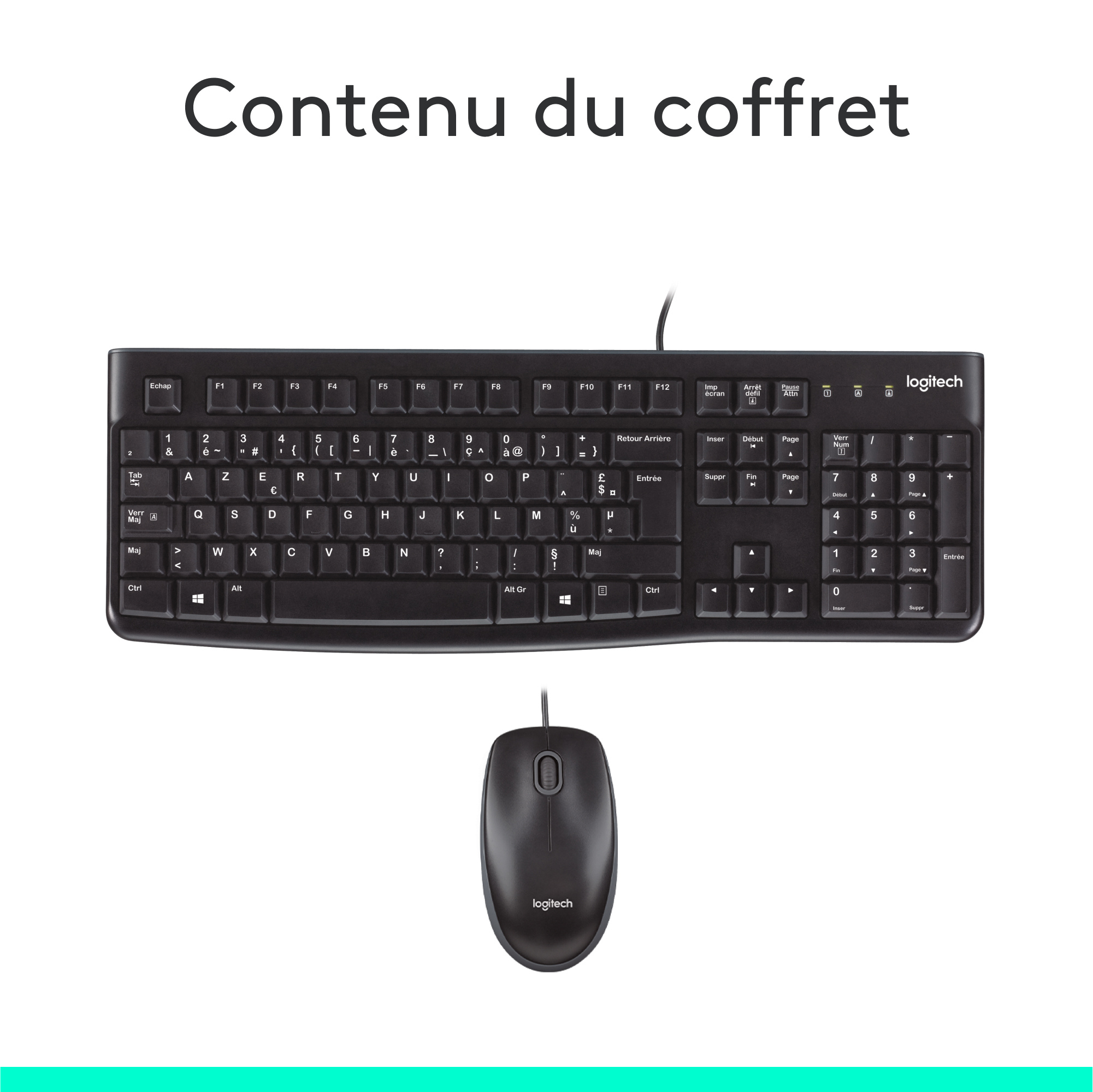 Le Combo MK120 rend la tâche facile. Un clavier et une souris taille standard qui offrent un design facile à utiliser familier qui fonctionne dès la sortie de boîte. Branchez simplement le combo filaire via USB et c'est prêt. Le clavier filaire avec pavé numérique rend la saisie de données, calcul et navigation facile. La barre d'espace incurvée avec les touches faciles à lire offrent une expérience de frappe confortable. Une souris taille standard ambidextre offre un suivi fluide et à une forme courbée pour supporter votre paume. Cet ensemble clavier souris offre fiabilité et durabilité.