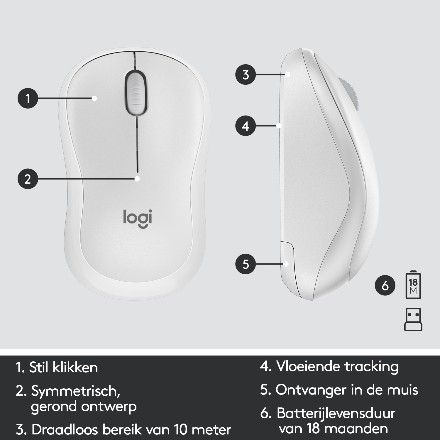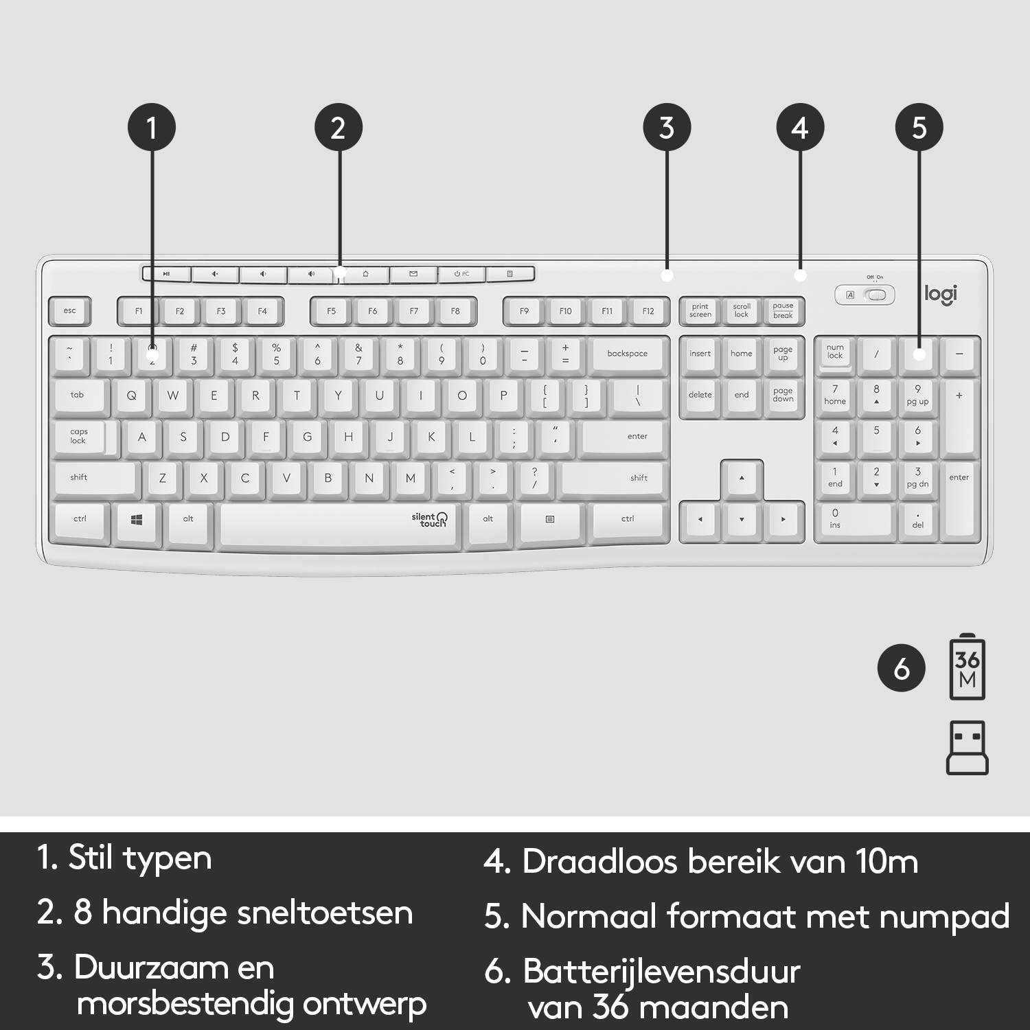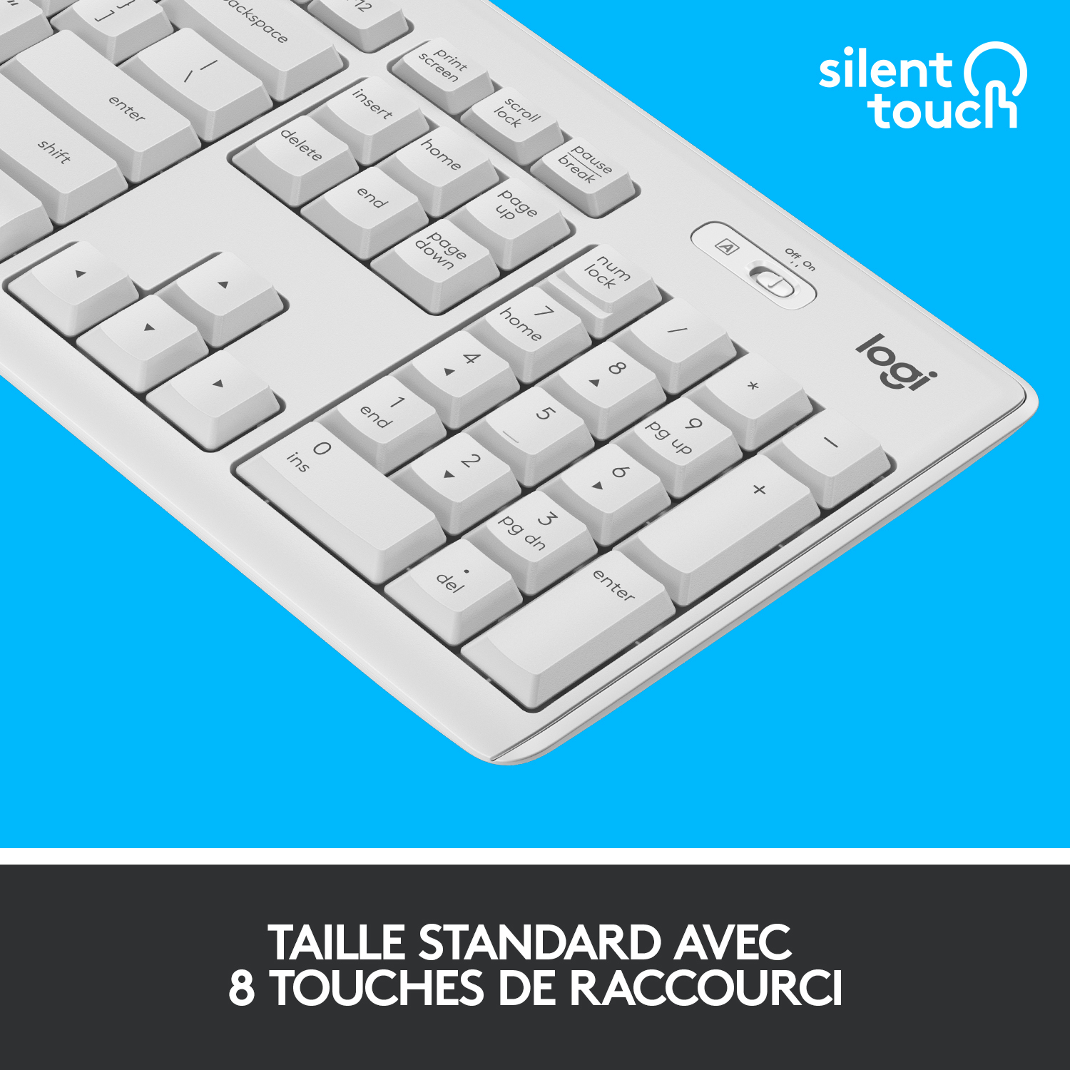 Logitech MK295 Silent, Taille réelle (100 %), Sans fil, RF sans fil, QWERTY, Blanc, Souris incluse