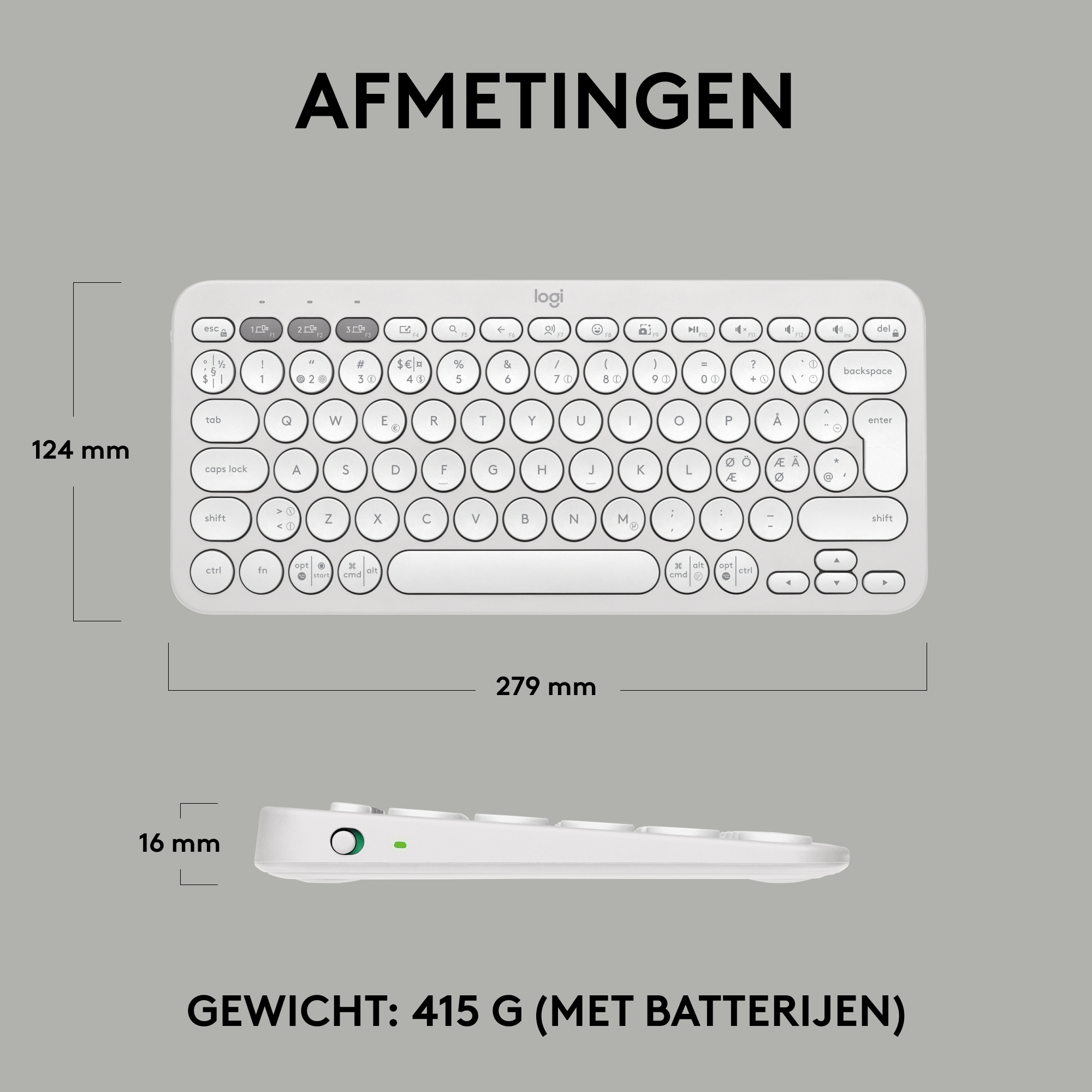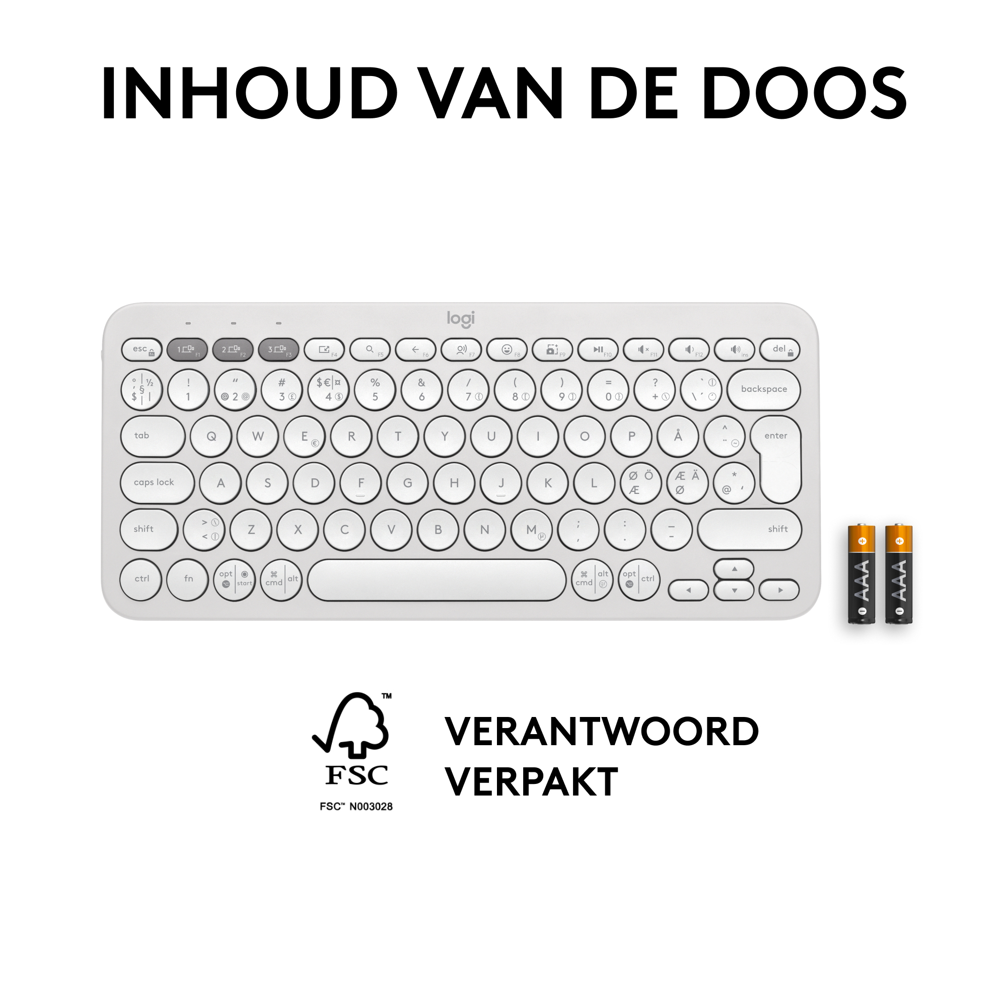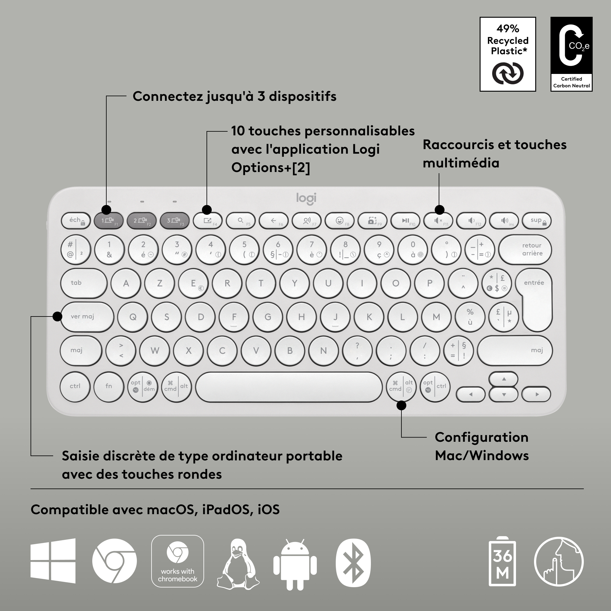 Logitech Pebble Keys 2 K380s, Mini, Sans fil, Bluetooth, Commutateur de touche « ciseaux », AZERTY, Blanc