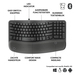 Logitech Wave Keys clavier ergonomique sans fil avec repose-poignets rembourré, Taille réelle (100 %), RF sans fil + Bluetooth, Clavier à membrane, QWERTY, Graphite