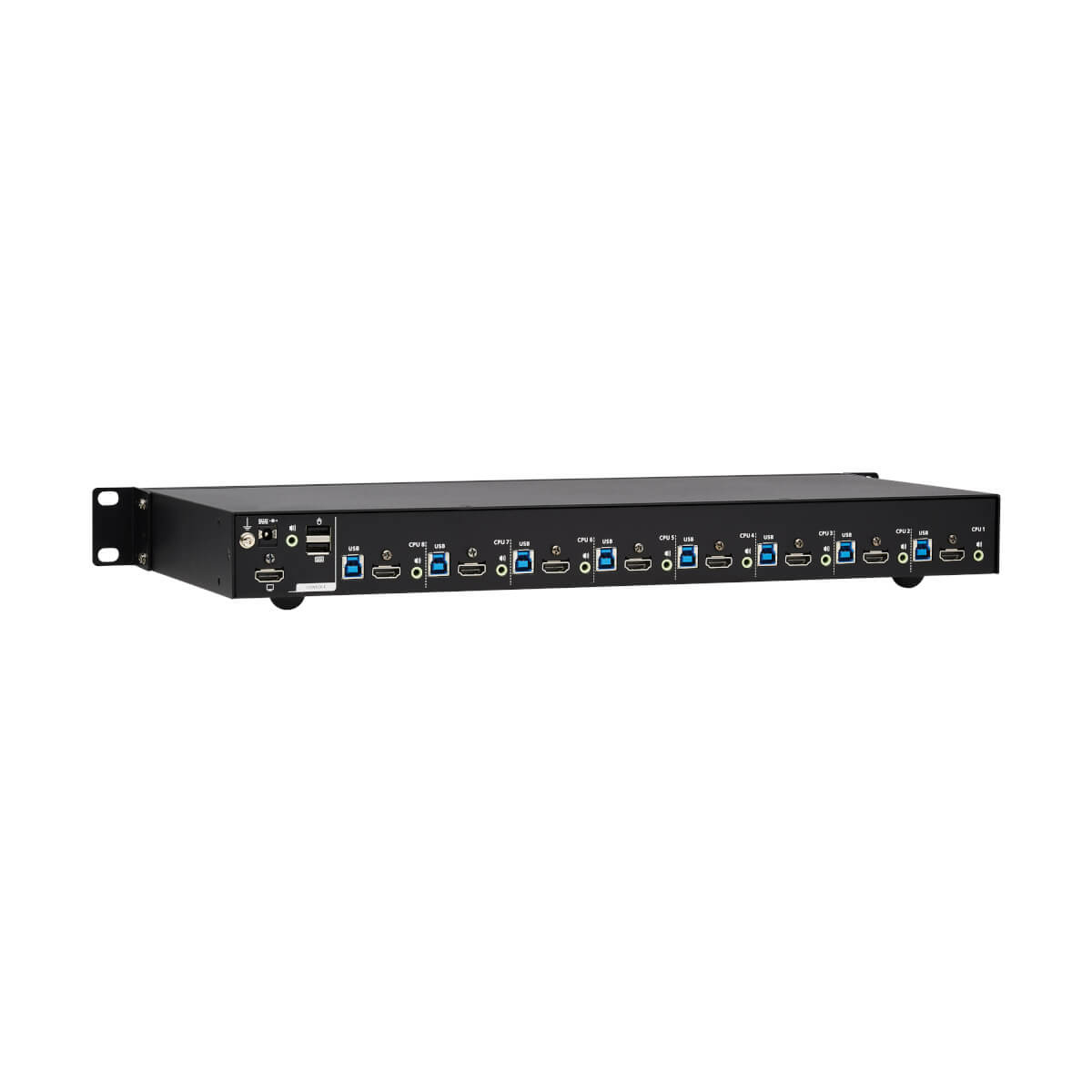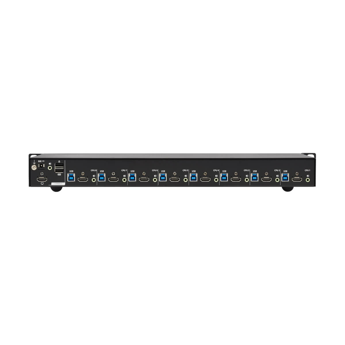 Tripp Lite B024-H4U08. Port clavier: USB, Port souris: USB, Port vidéo: HDMI. Type HD: UXGA, Résolution maximale: 4096 x 2160 pixels, Largeur de bande vidéo: 60 Hz. Couleur du produit: Noir, Capacité du rack: 1U, Matériau du boîtier/corps: Métal. Source d'alimentation: CC, Tension d'entrée: 100 - 240 V, Fréquence d'entrée AC: 50 - 60 Hz. Certificats de conformité: CCC, CE, Federal Communications Commission (FCC), REACH, RoHS, WEEE