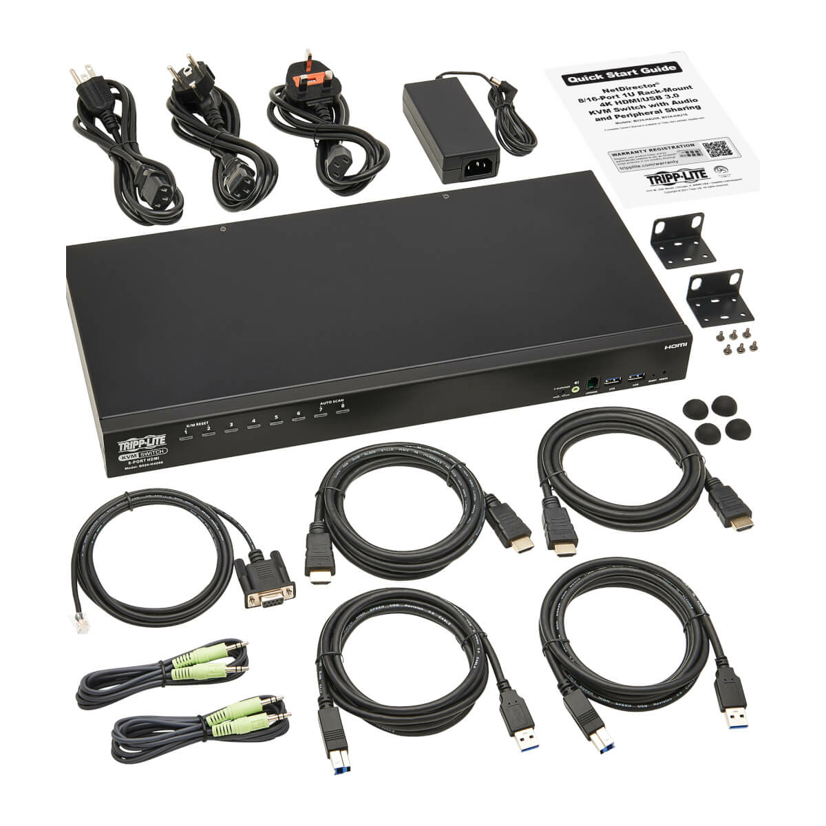 Tripp Lite 8-Port 4K HDMI/USB KVM Switch - 4K 60 Hz Video/Audio, USB Peripheral Sharing, 1U Rack-Mount, TAA Commutateur KVM - Noir