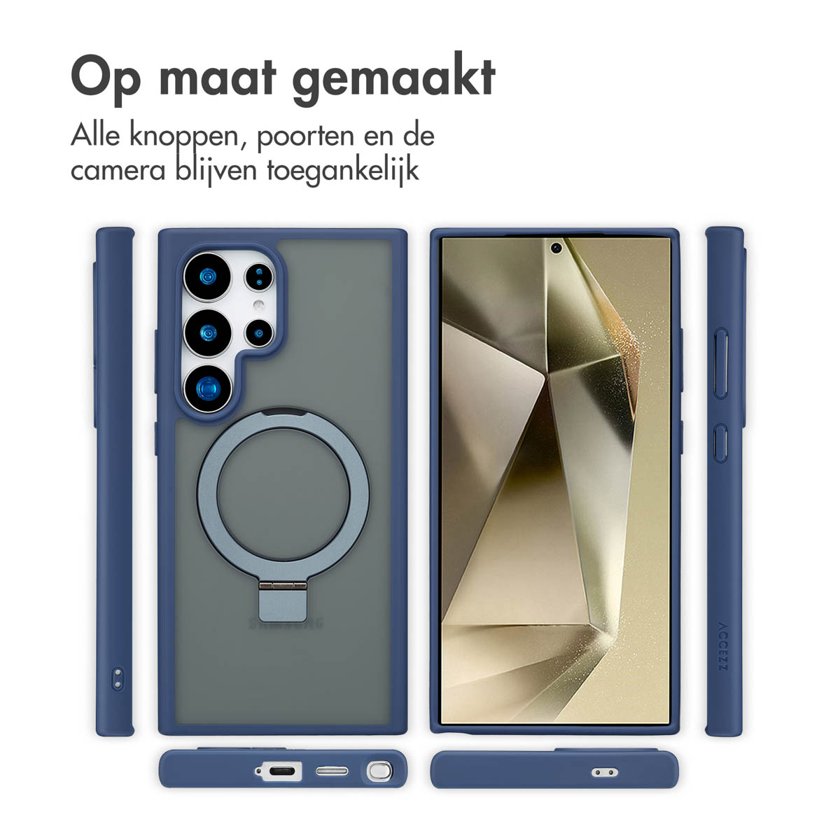 Accezz SH00081220. Type d'étui: Housse, Compatibilité de marque: Samsung, Compatibilité: Samsung Galaxy S24 Ultra, Taille maximale de l’écran: 17,3 cm (6.8"), Coloration de surface: Monochromatique, Couleur du produit: Bleu, Support de bureau
