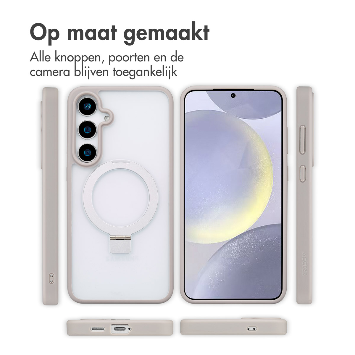 Accezz SH00081222. Type d'étui: Housse, Compatibilité de marque: Samsung, Compatibilité: Samsung Galaxy S24 Plus, Taille maximale de l’écran: 17 cm (6.7"), Coloration de surface: Monochromatique, Couleur du produit: Gris, Support de bureau