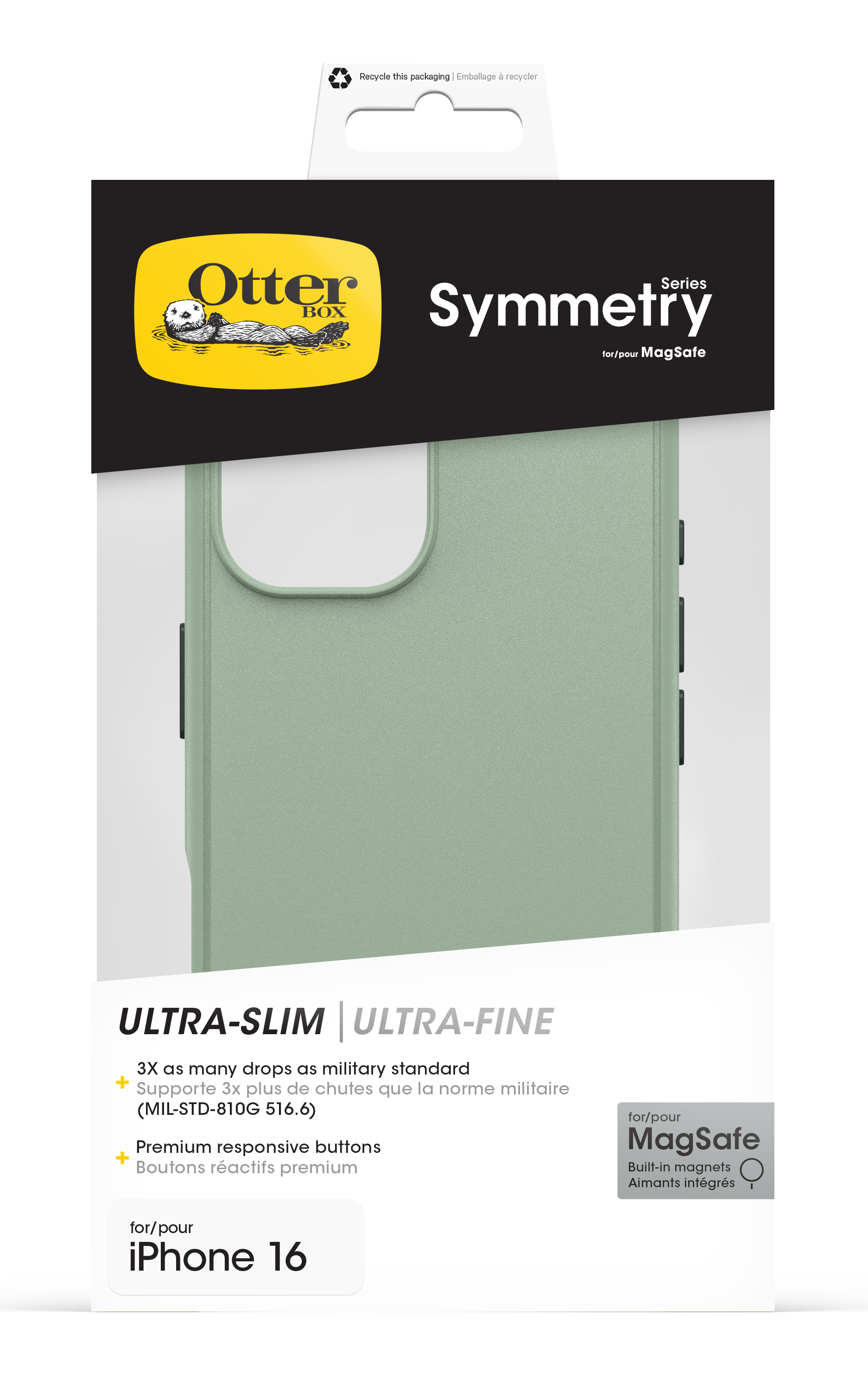 OtterBox Symmetry Series pour MagSafe pour Apple iPhone 16, Artichoke Heart, Housse, Apple, iPhone 16, 15,5 cm (6.1"), Vert