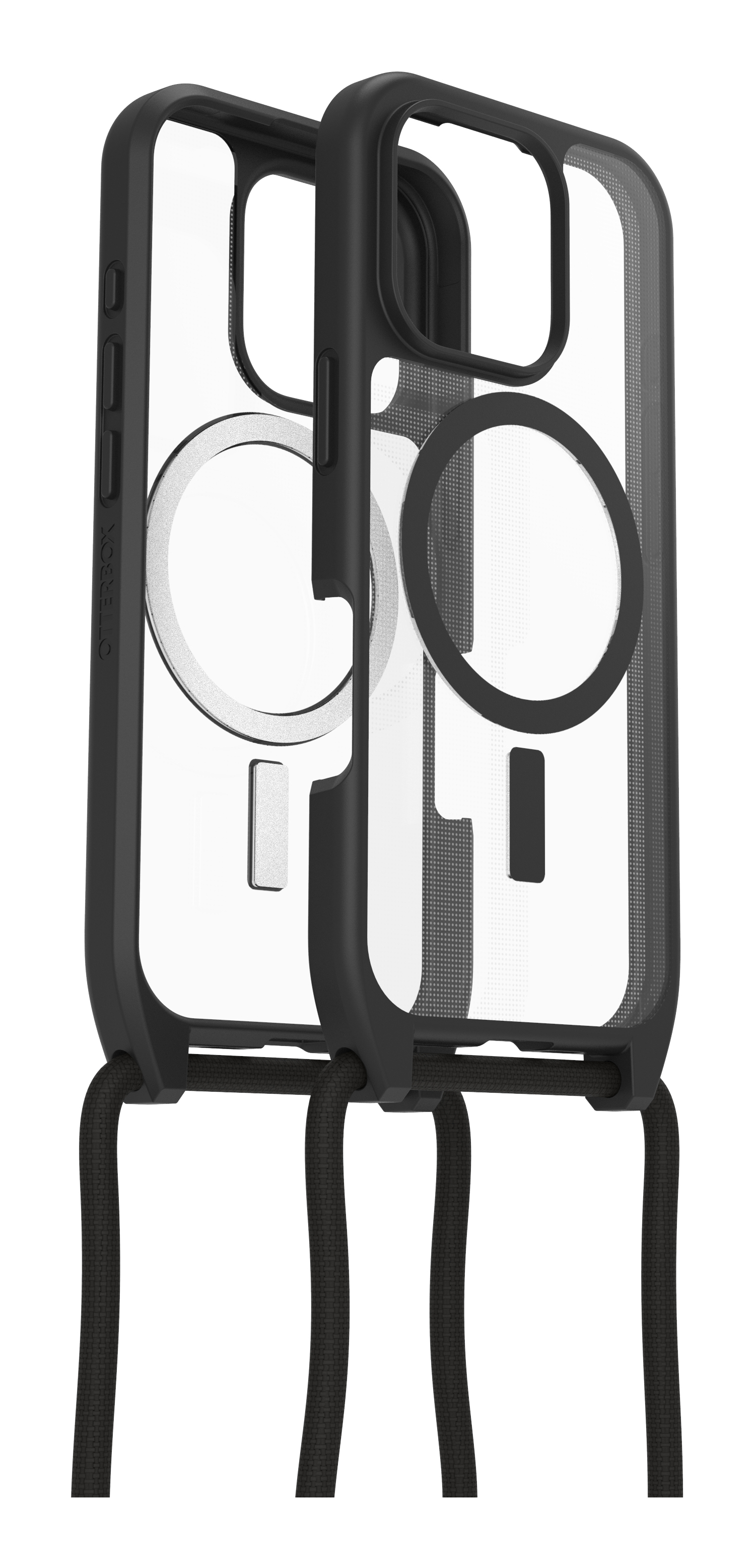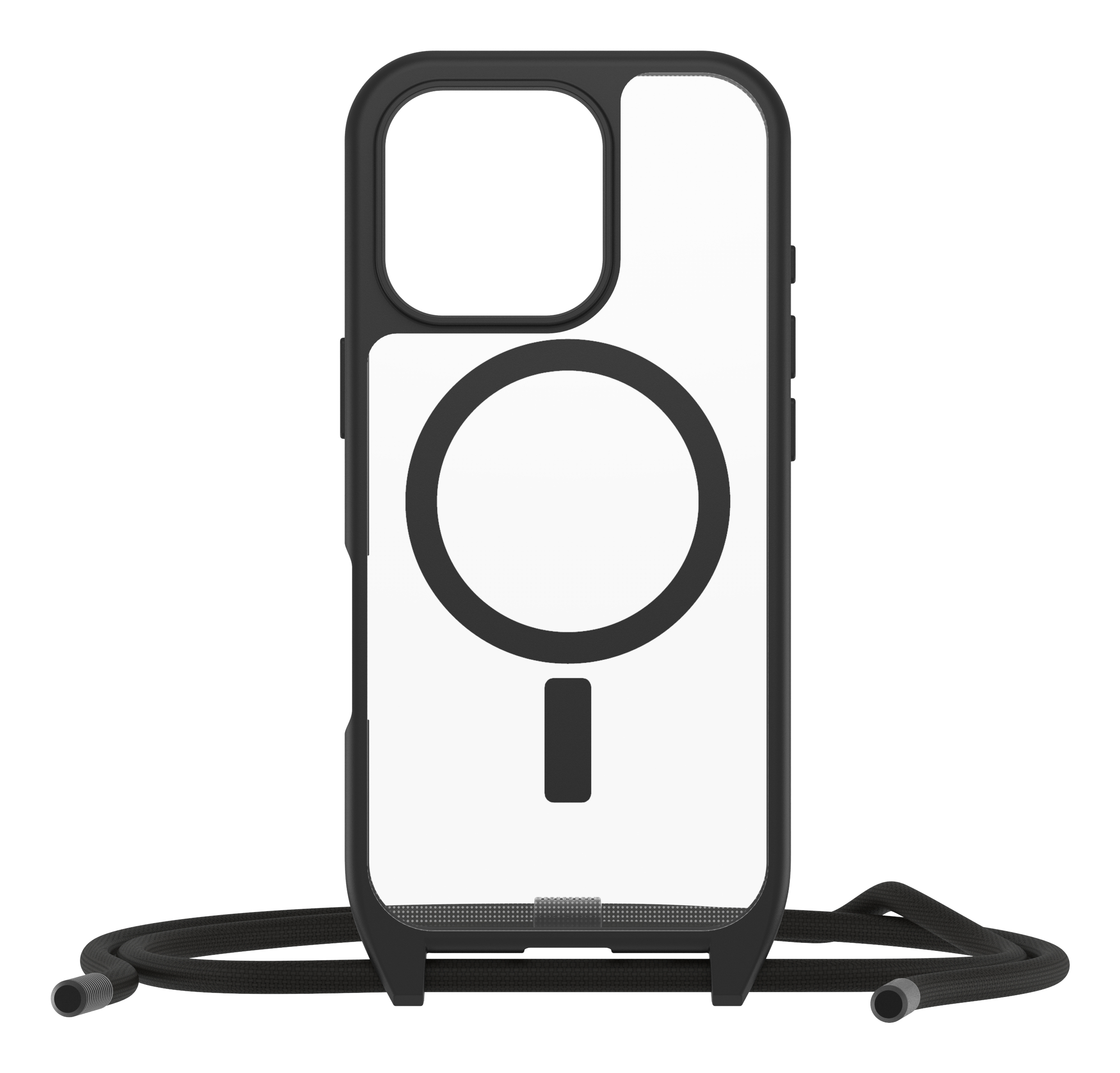 OtterBox React Series Necklace Magsafe pour iPhone 16 Pro with Strap, Black Crystal (Clear/Black), Housse, Apple, iPhone 16 Pro, 16 cm (6.3"), Noir, Transparent
