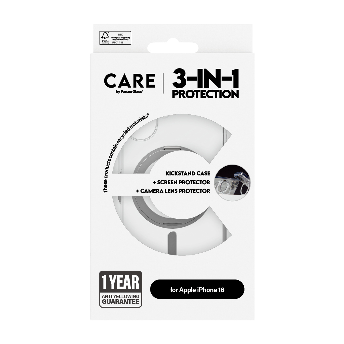 PanzerGlass CARE™ by ® 3-in-1 Ceramic Bundle iPhone 16. Type d'étui: Housse, Compatibilité de marque: Apple, Compatibilité: Apple - iPhone 16, Couleur du produit: Transparent