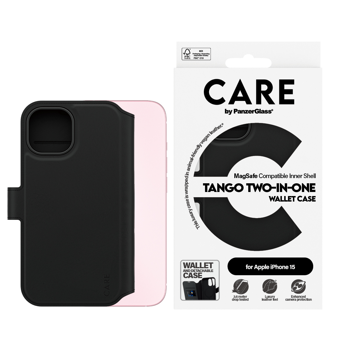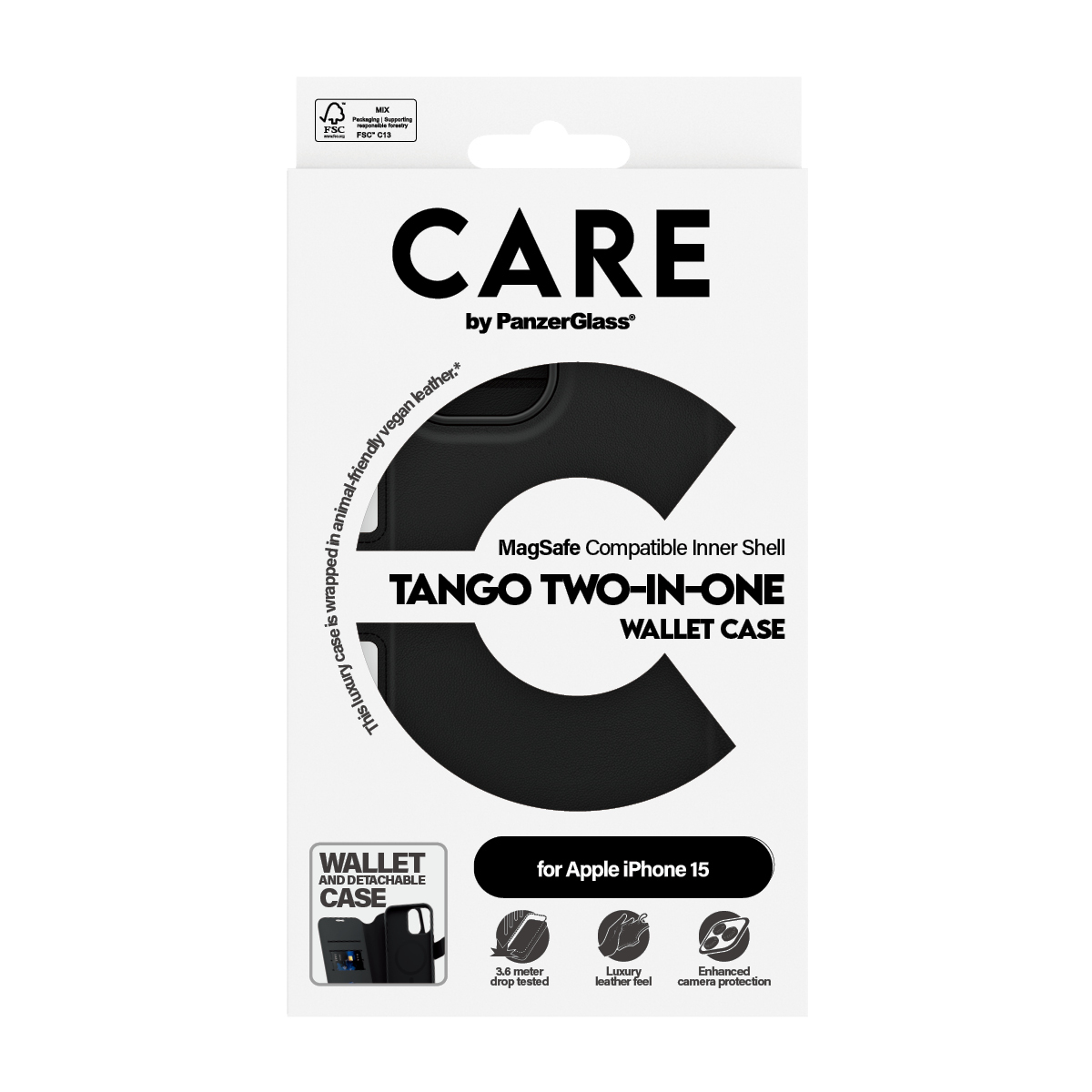 PanzerGlass CARE™ by ® Tango 2-in-1 Wallet Case w. MagSafe iPhone 15, Housse, Apple, Apple - iPhone 15, Noir
