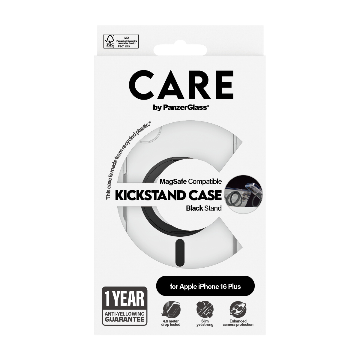 PanzerGlass CARE™ by ® Case Transparent w. Black Kickstand & MagSafe iPhone 16 Plus, Housse, Apple, Apple - iPhone 16 Plus, Noir