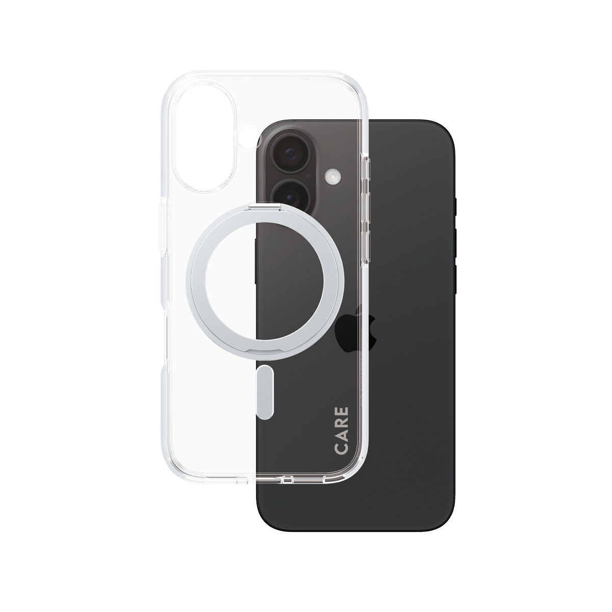 PanzerGlass CARE™ by ® Case Transparent w. Silver Kickstand & MagSafe iPhone 16, Housse, Apple, Apple - iPhone 16, Transparent