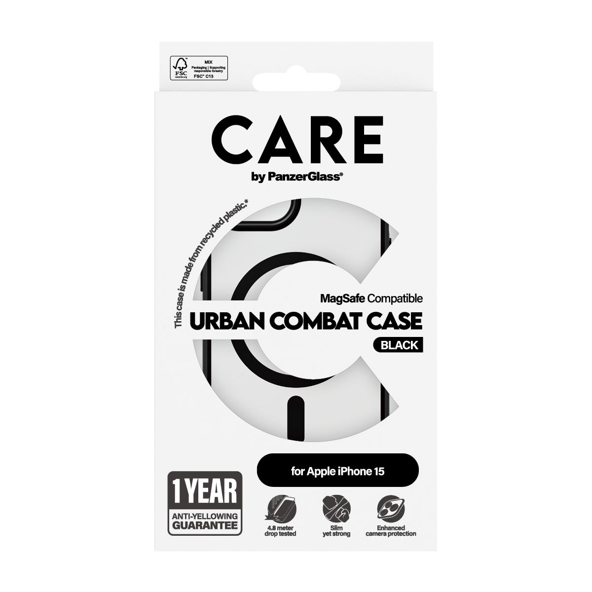 PanzerGlass CARE™ by ® Urban Combat Case Transparent w. Black MagSafe iPhone 15, Housse, Apple, Apple - iPhone 15, 15,5 cm (6.1"), Noir