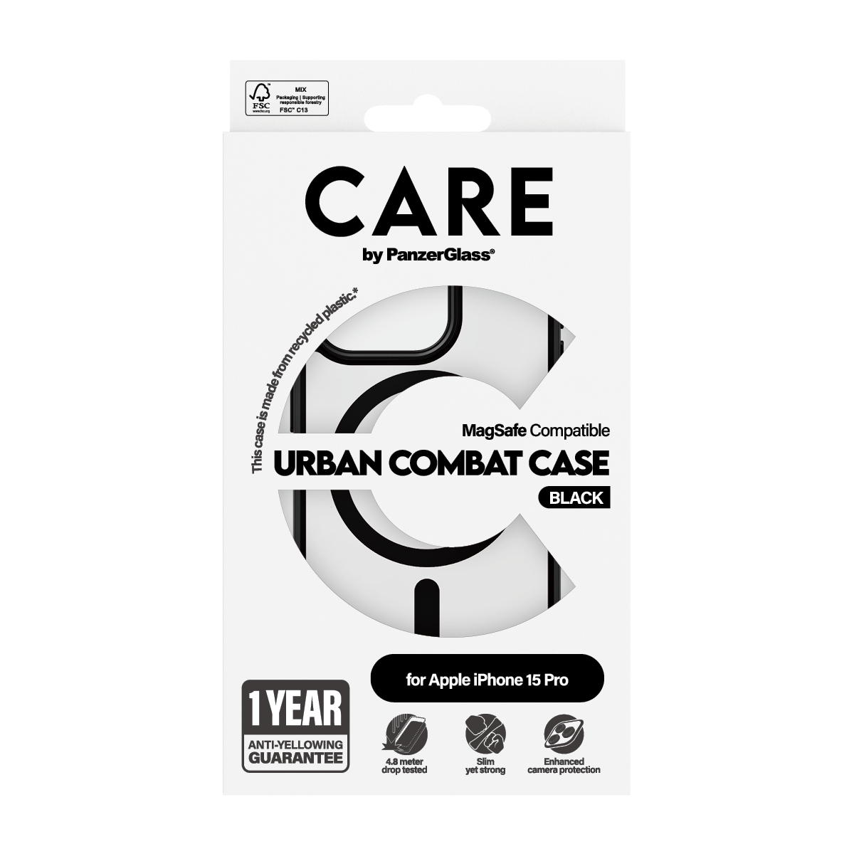 PanzerGlass CARE™ by ® Urban Combat Case Transparent w. Black MagSafe iPhone 15 Pro. Type d'étui: Housse, Compatibilité de marque: Apple, Compatibilité: Apple - iPhone 15 Pro, Taille maximale de l’écran: 15,5 cm (6.12"), Coloration de surface: Monochromatique, Couleur du produit: Noir