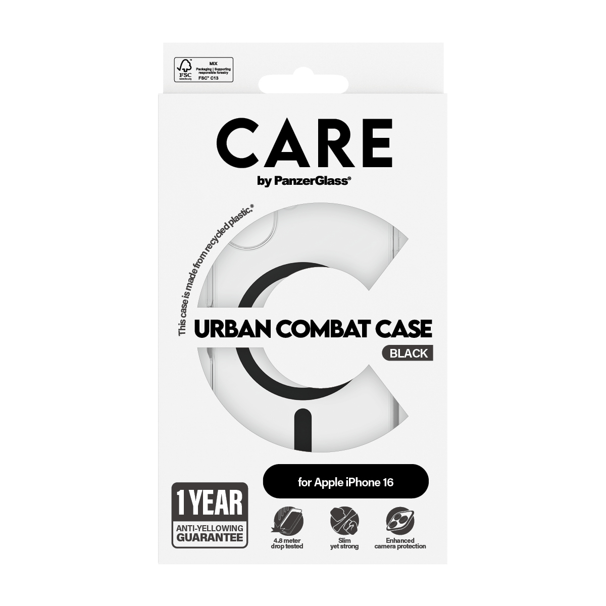 PanzerGlass CARE™ by ® Urban Combat Case Transparent w. Black MagSafe iPhone 16, Housse, Apple, Apple - iPhone 16, Noir