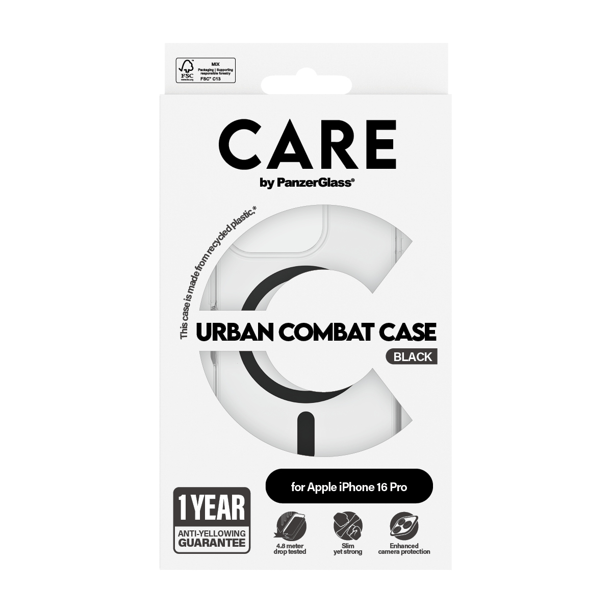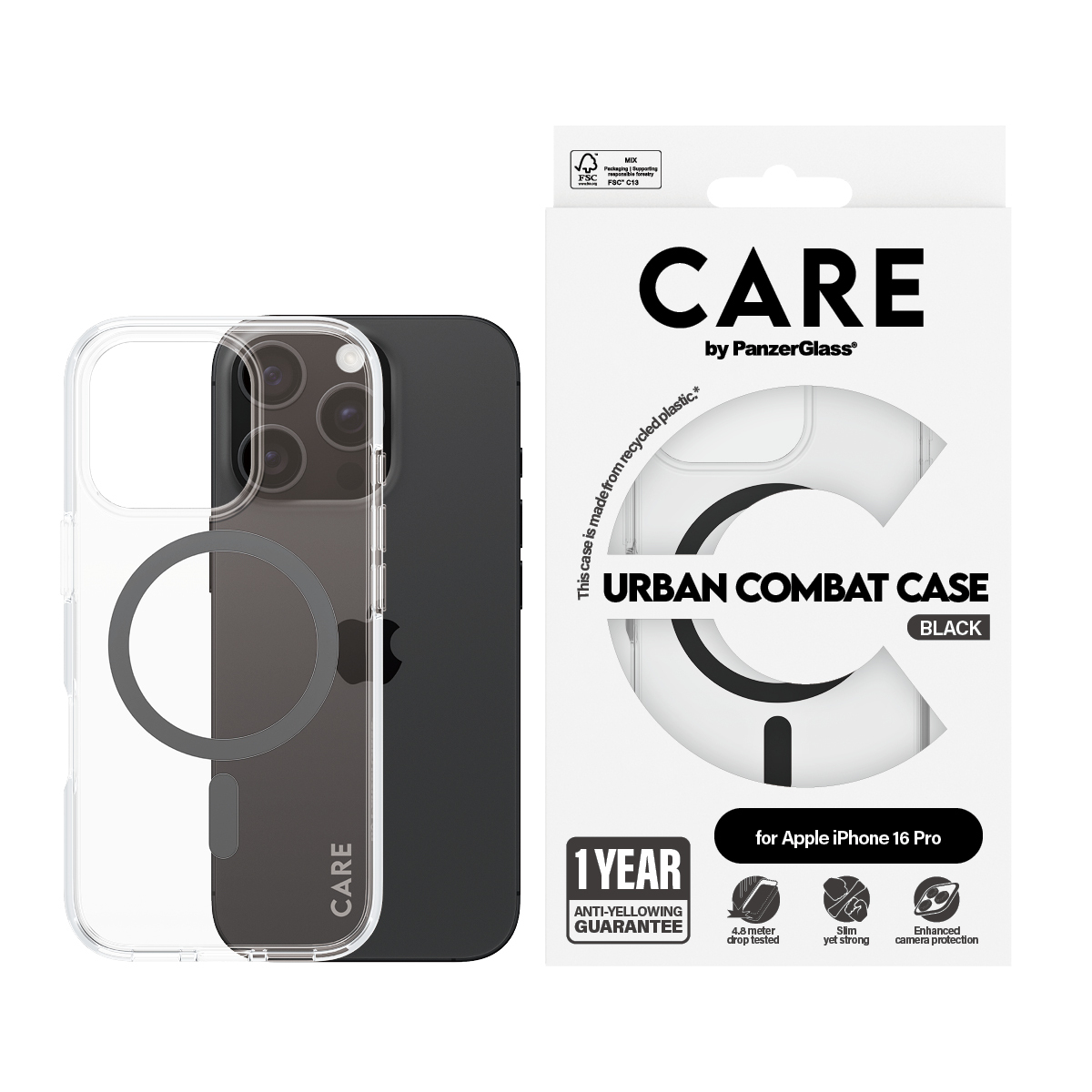 PanzerGlass CARE™ by ® Urban Combat Case Transparent w. Black MagSafe iPhone 16 Pro. Type d'étui: Housse, Compatibilité de marque: Apple, Compatibilité: Apple - iPhone 16 Pro, Couleur du produit: Noir