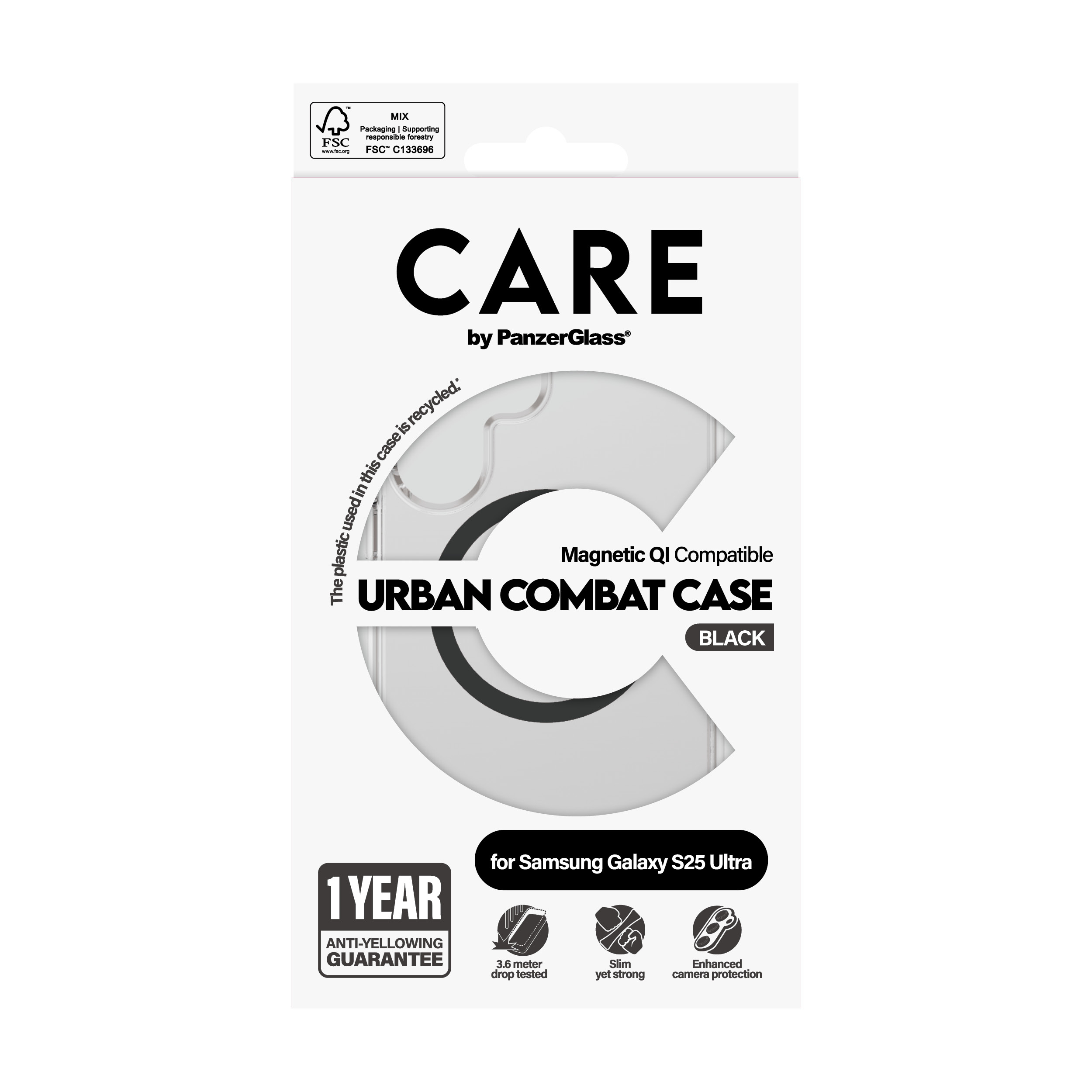 PanzerGlass CARE™ by ® Urban Combat Case Transparent w. Black Qi Compatible Samsung Galaxy S25 Ultra. Type d'étui: Housse, Compatibilité de marque: Samsung, Compatibilité: Samsung - Galaxy S25 Ultra, Couleur du produit: Transparent