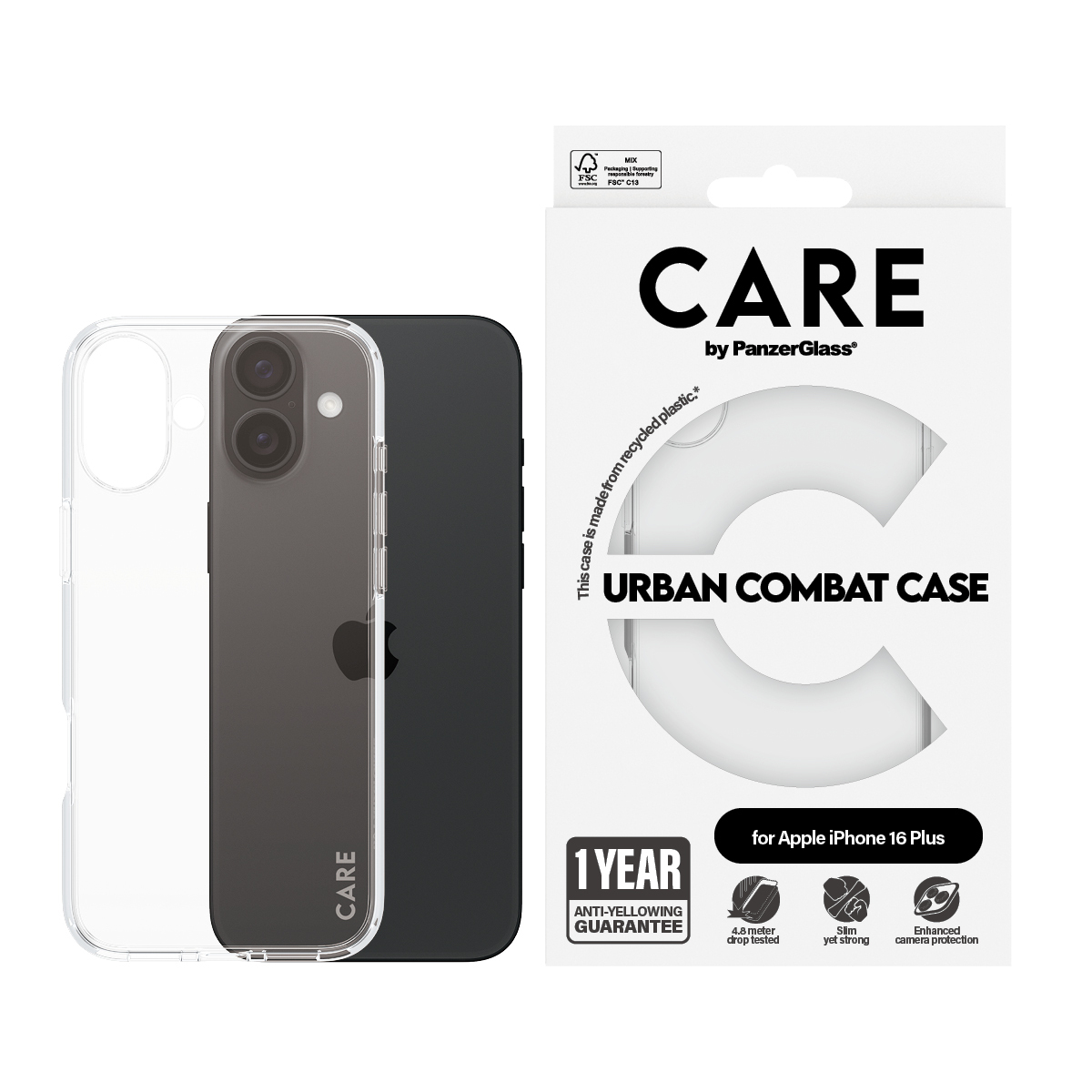 PanzerGlass CARE™ by ® Urban Combat Case Transparent iPhone 16 Plus. Type d'étui: Housse, Compatibilité de marque: Apple, Compatibilité: Apple - iPhone 16 Plus, Couleur du produit: Transparent