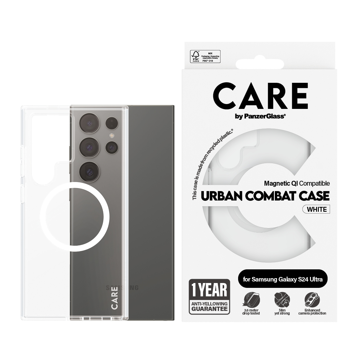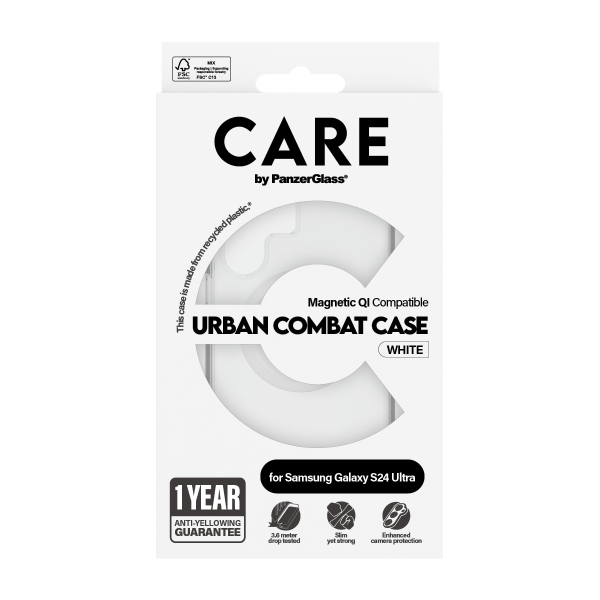 PanzerGlass CARE™ by ® Urban Combat Case Transparent w. White Qi Compatible Samsung Galaxy S24 Ultra. Type d'étui: Housse, Compatibilité de marque: Samsung, Compatibilité: Samsung - Galaxy S24 Ultra, Couleur du produit: Transparent