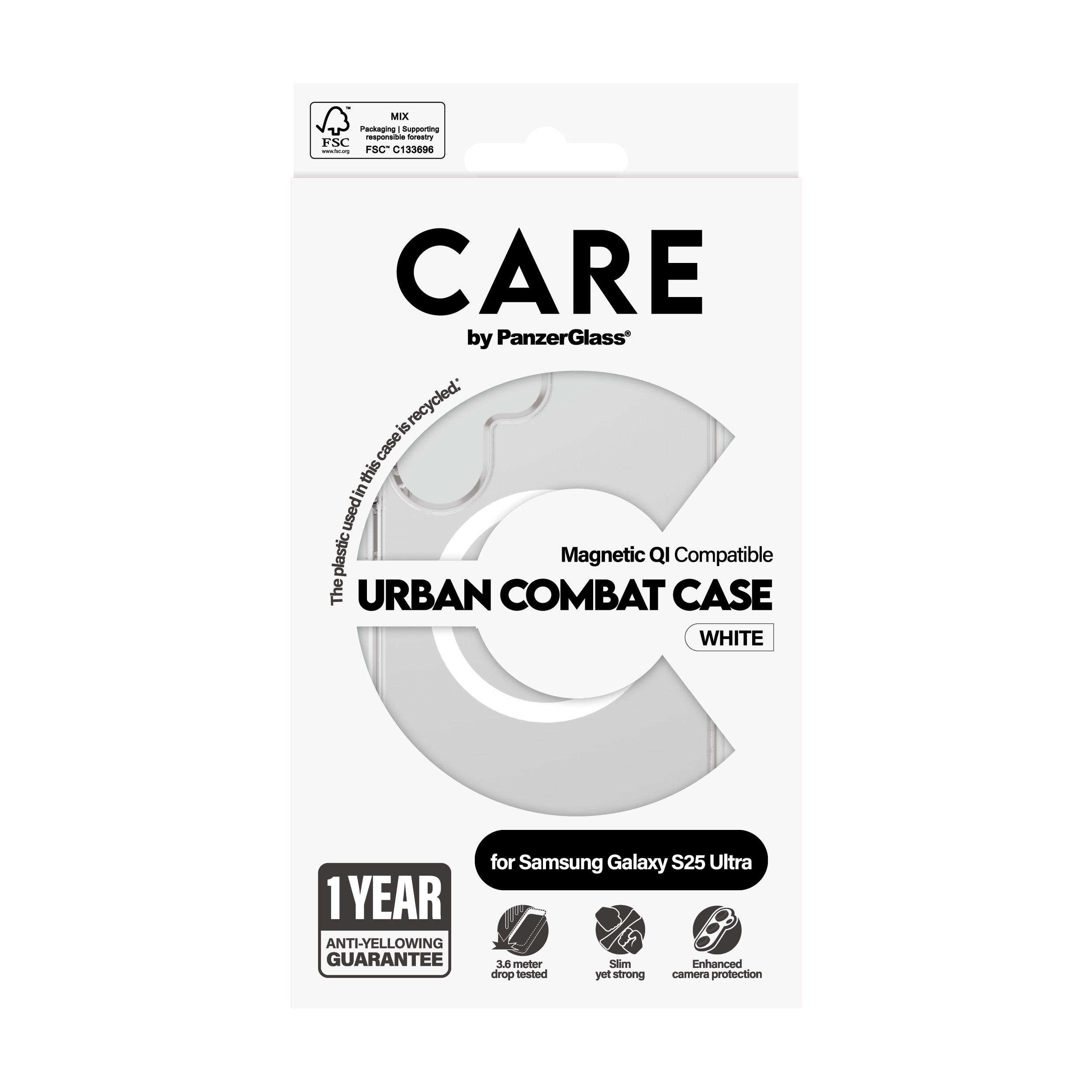 PanzerGlass CARE™ by ® Urban Combat Case Transparent w. White Qi Compatible Samsung Galaxy S25 Ultra. Type d'étui: Housse, Compatibilité de marque: Samsung, Compatibilité: Samsung - Galaxy S25 Ultra, Couleur du produit: Transparent