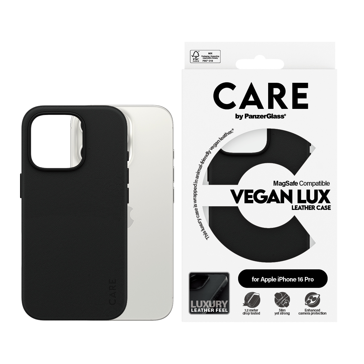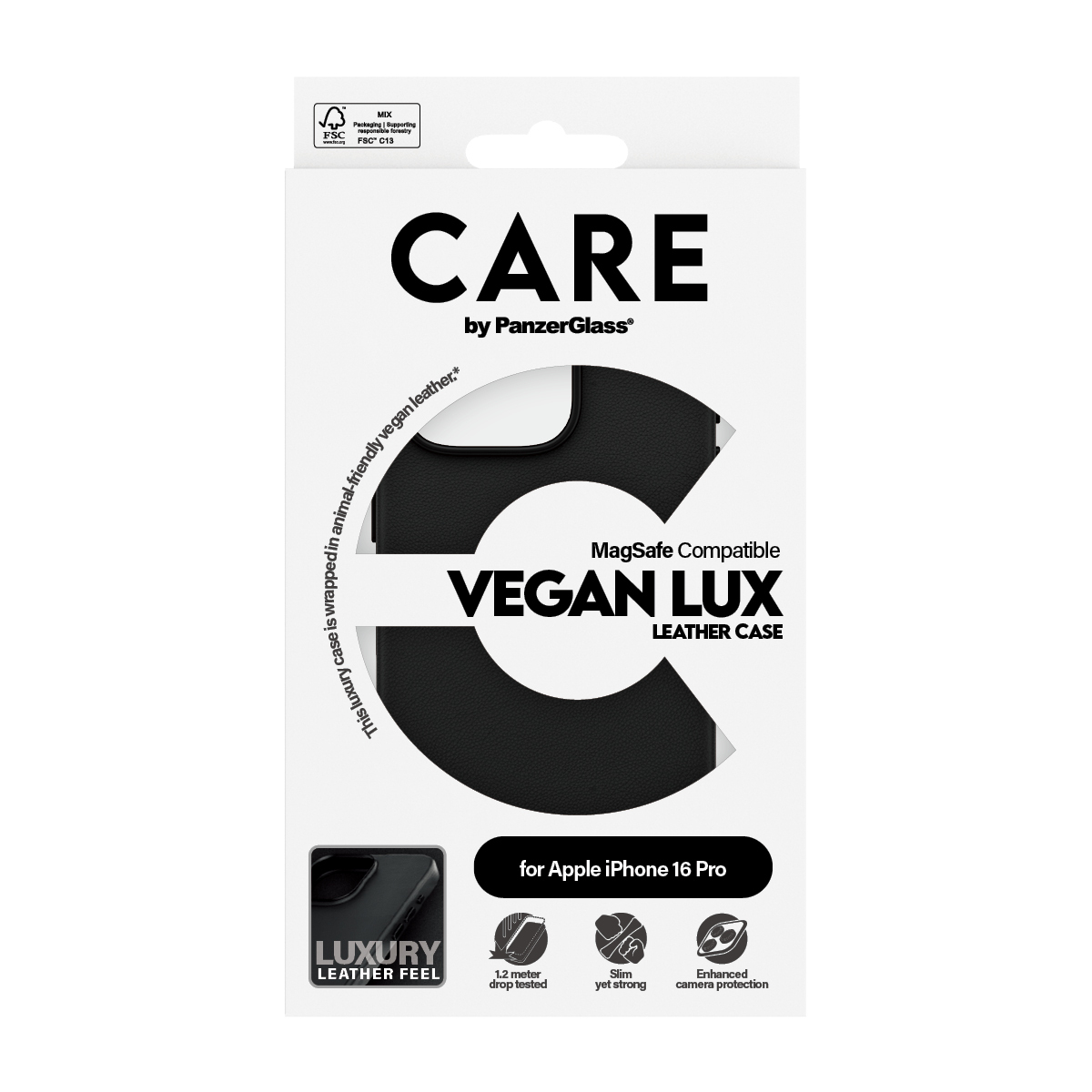 PanzerGlass CARE™ by ® Urban Combat Vegan Leather Case iPhone 16 Pro. Type d'étui: Housse, Compatibilité de marque: Apple, Compatibilité: Apple - iPhone 16 Pro, Couleur du produit: Noir