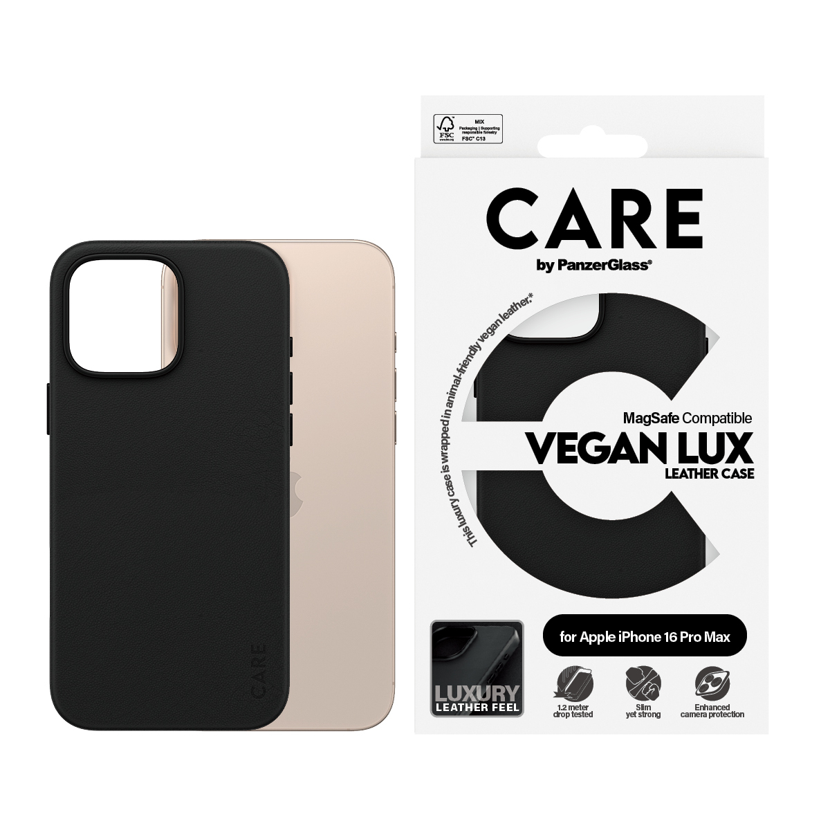 PanzerGlass CARE™ by ® Urban Combat Vegan Leather Case iPhone 16 Pro Max. Type d'étui: Housse, Compatibilité de marque: Apple, Compatibilité: Apple - iPhone 16 Pro Max, Couleur du produit: Noir