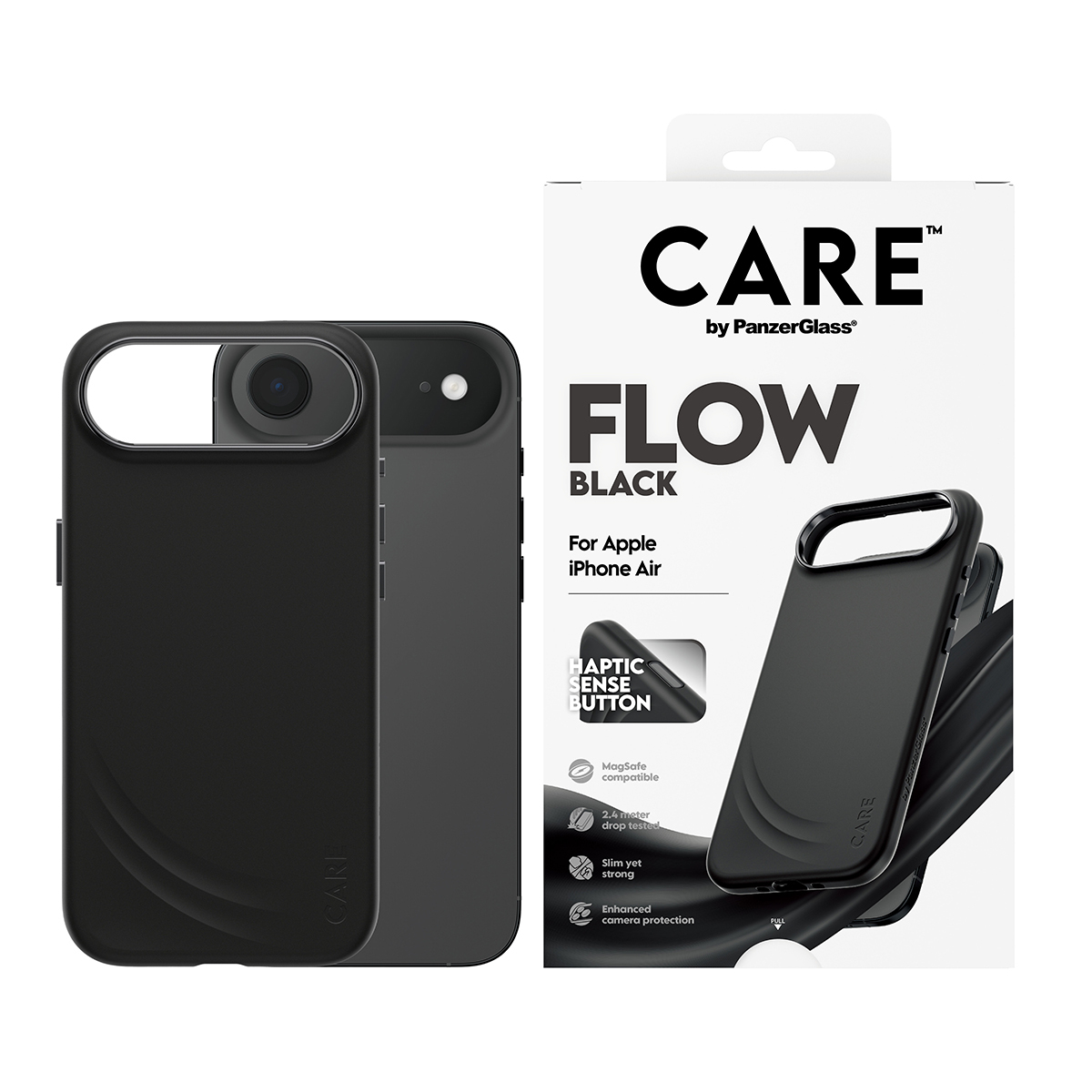 PanzerGlass CARE™ by ® Flow Case Black w. Haptic Button & MagSafe iPhone Air. Type d'étui: Housse, Compatibilité de marque: Apple, Compatibilité: Apple - iPhone Air, Couleur du produit: Noir